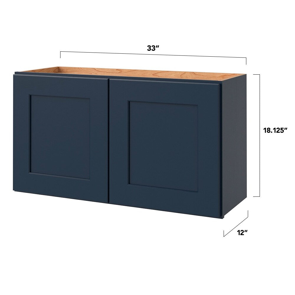 allen + roth Port 33-in W x 18.125-in H x 12-in D Navy Wall Fully Assembled Cabinet (Flat Panel Shaker Door Style)