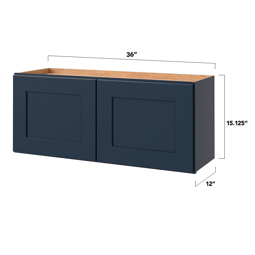 allen + roth Port 36-in W x 15.125-in H x 12-in D Navy Wall Fully Assembled Cabinet (Flat Panel Shaker Door Style)