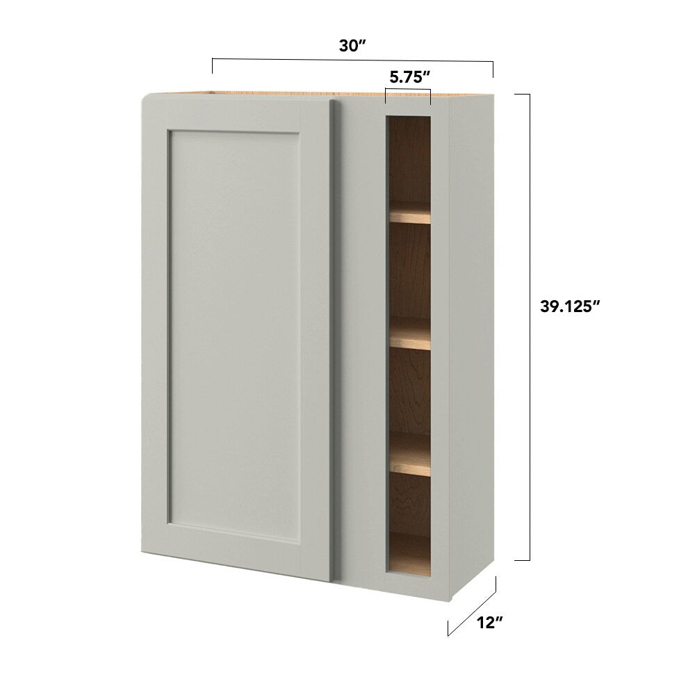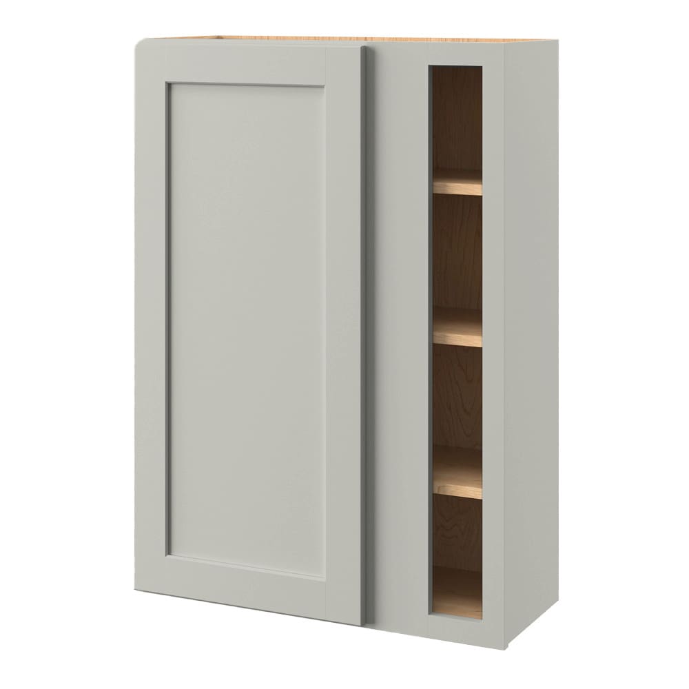 Elevate your kitchen space with the allen + roth Stonewall Blind Corner Wall Cabinet. Its flat panel Shaker design offers a modern yet timeless appeal, while the painted stone finish delivers superior durability with seamless elegance. Ideal for maximizing storage, this fully assembled cabinet includes soft-close doors and adjustable shelves.