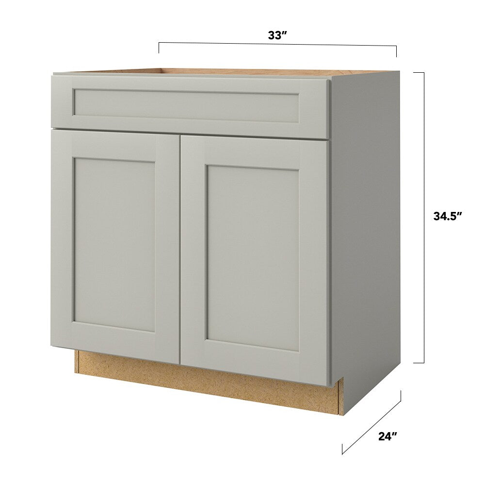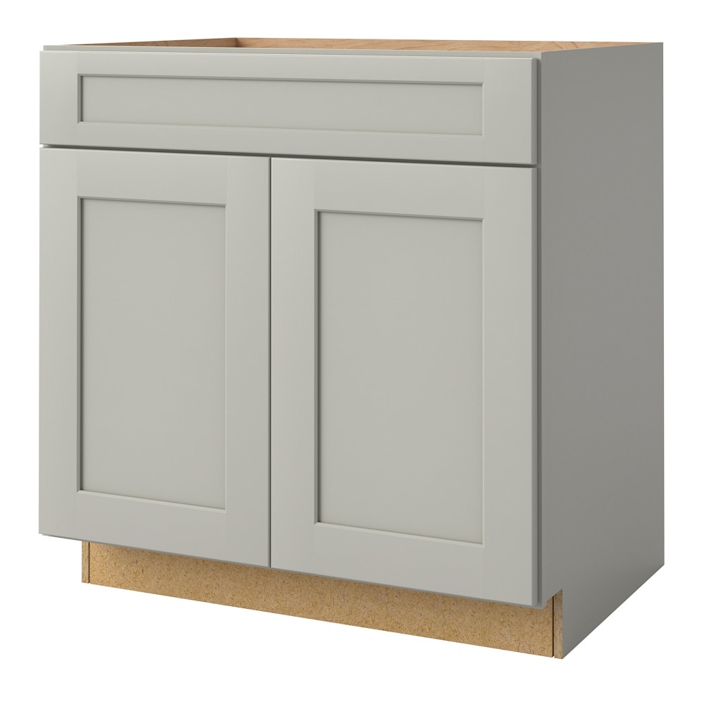 Designed for modern elegance, the allen + roth Stonewall Stone Sink Base Cabinet combines durability with sleek aesthetics. This fully-assembled cabinet features a stunning flat panel Shaker style in a sophisticated gray finish, offering a seamless look with its full-overlay doors.