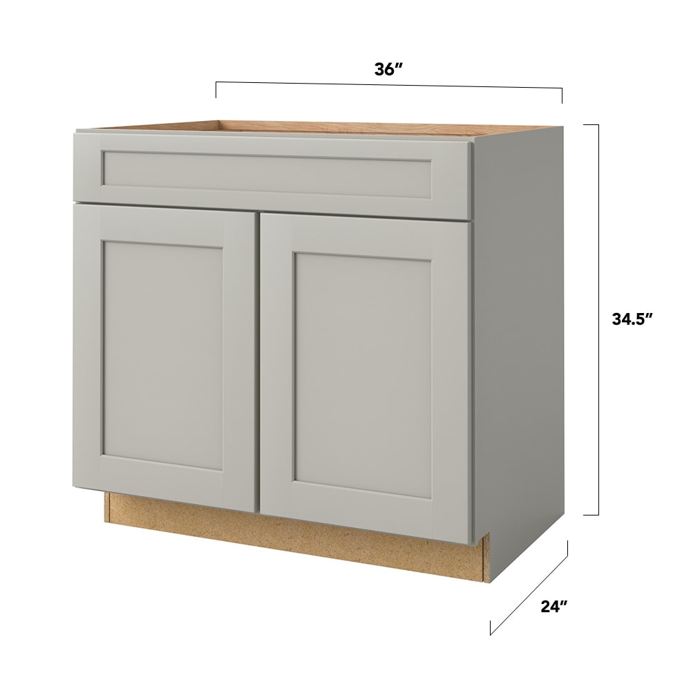 The allen + roth Stonewall Sink Base Cabinet is a seamless blend of form and function, epitomizing modern elegance with its gray, painted shaker-style design. Crafted from a combination of hardwoods and engineered materials, it delivers unmatched durability, and its fully assembled structure ensures easy installation. This cabinet is a stylish and practical addition to any kitchen or bathroom.