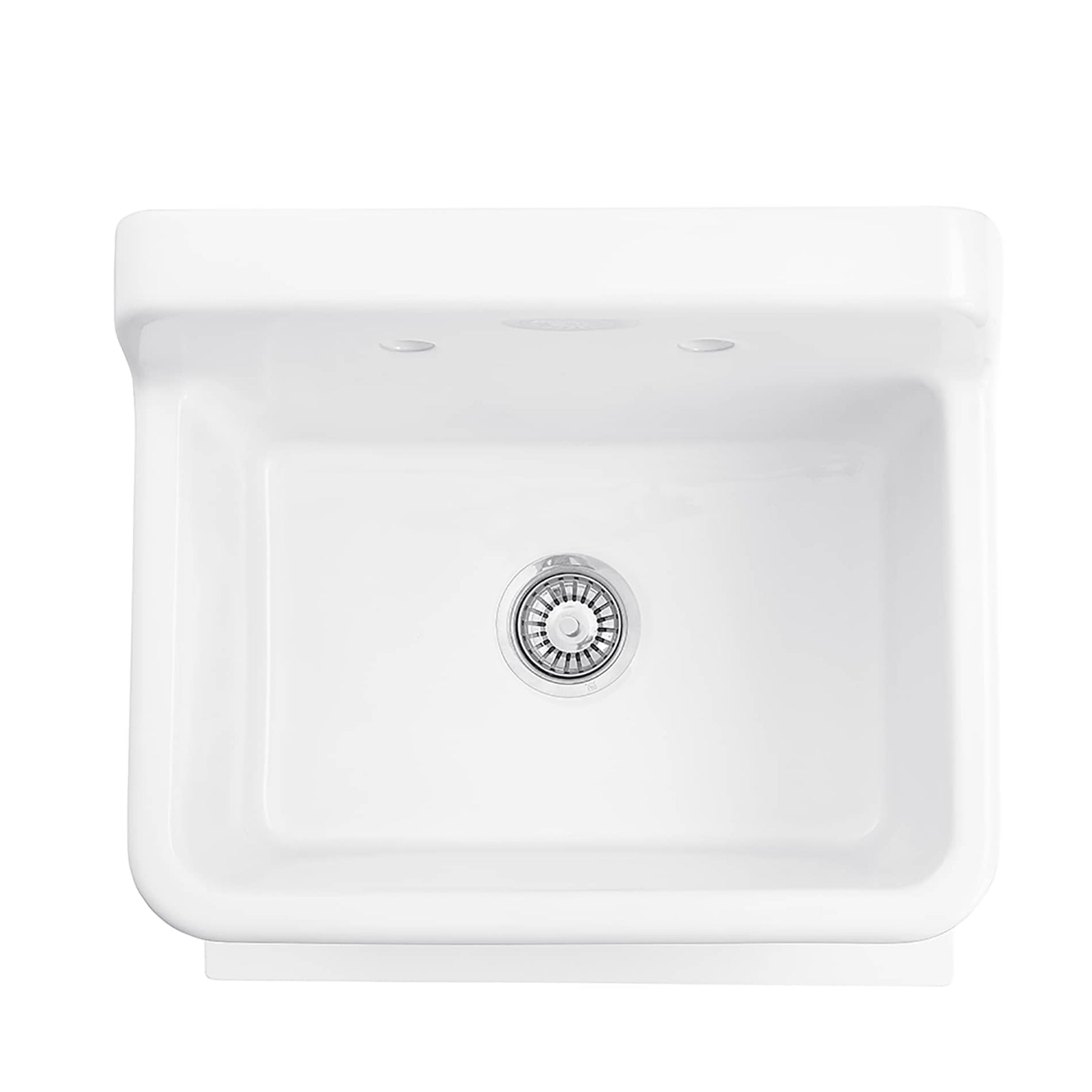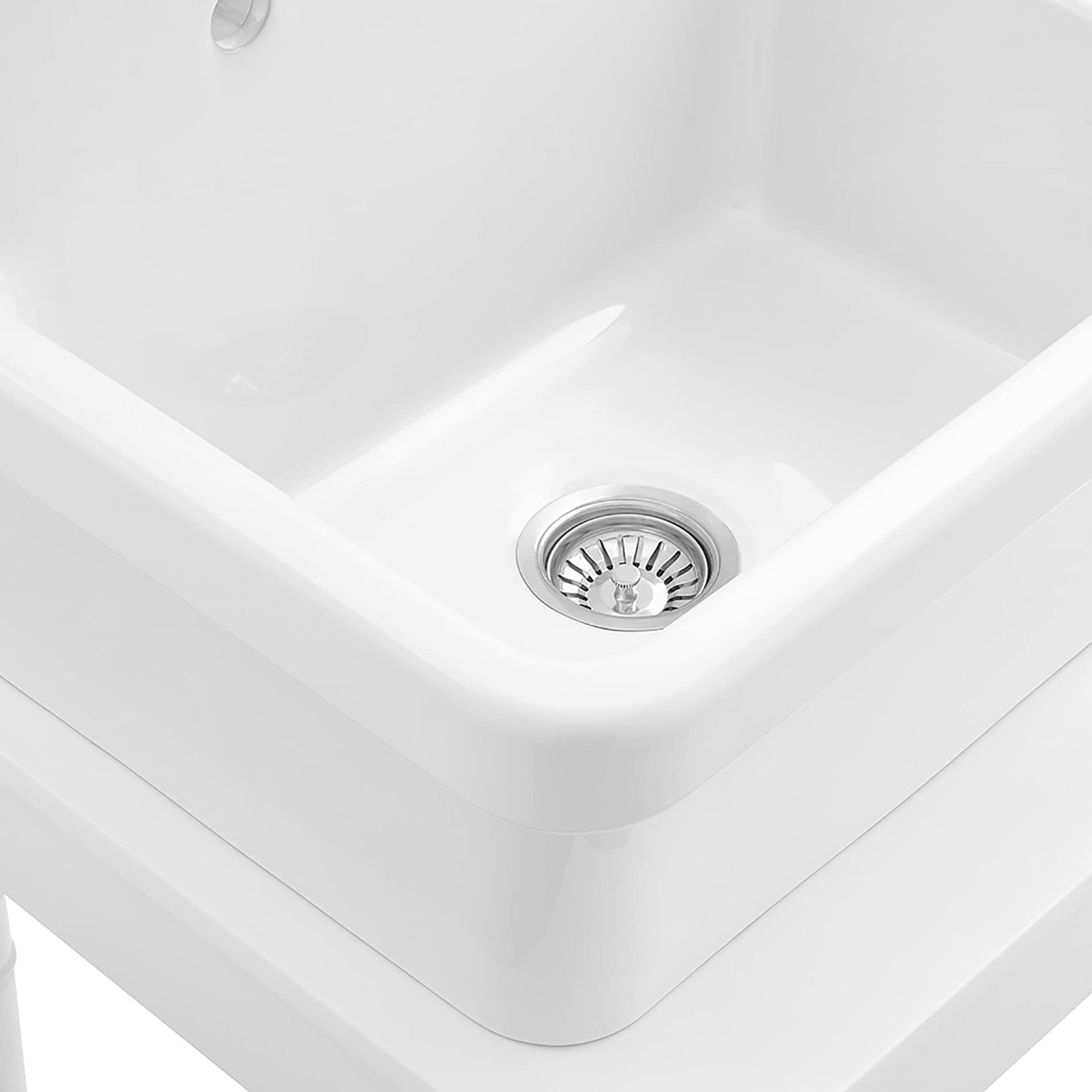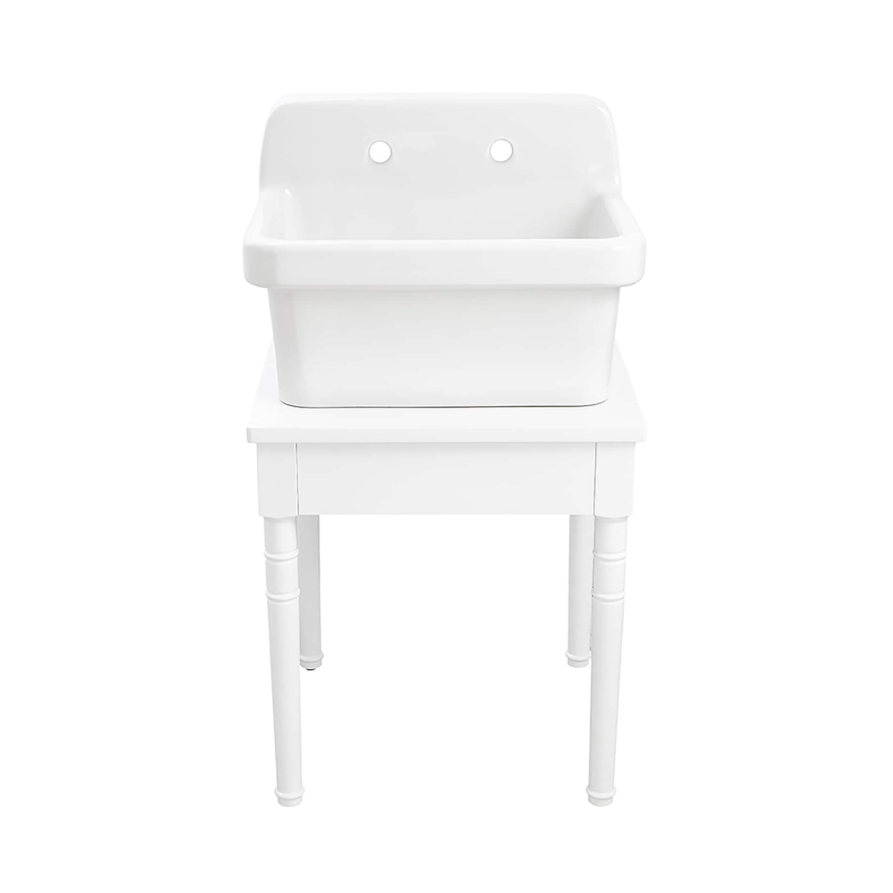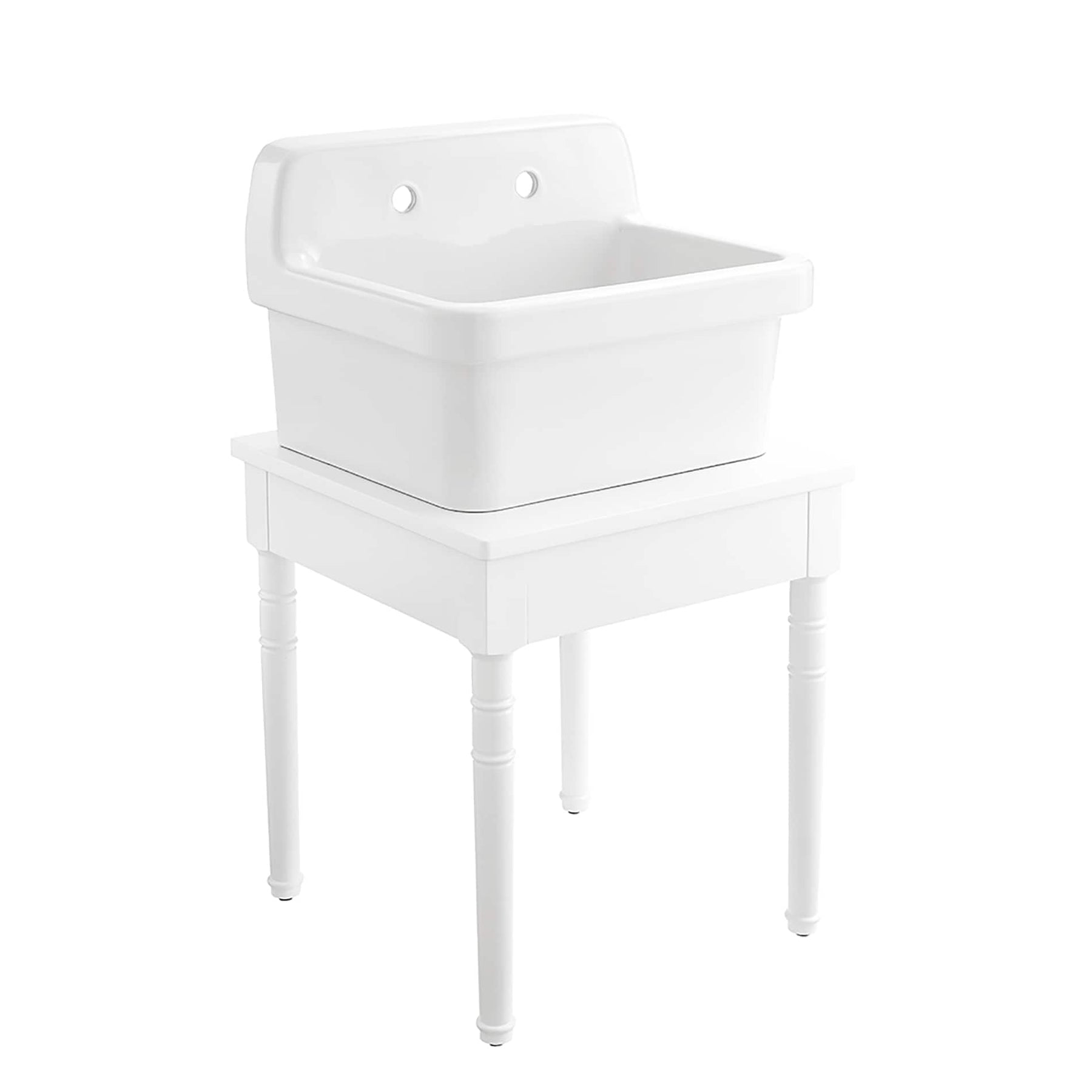 The allen + roth Wall Mount Utility Tub is a stylishly functional addition to any laundry room or mudroom. Constructed of high-quality vitreous china, it combines a chic glossy white finish with superior durability, offering resistance to scratches, stains, rust, and heat. This versatile utility tub features a generous basin size ideal for a variety of tasks.