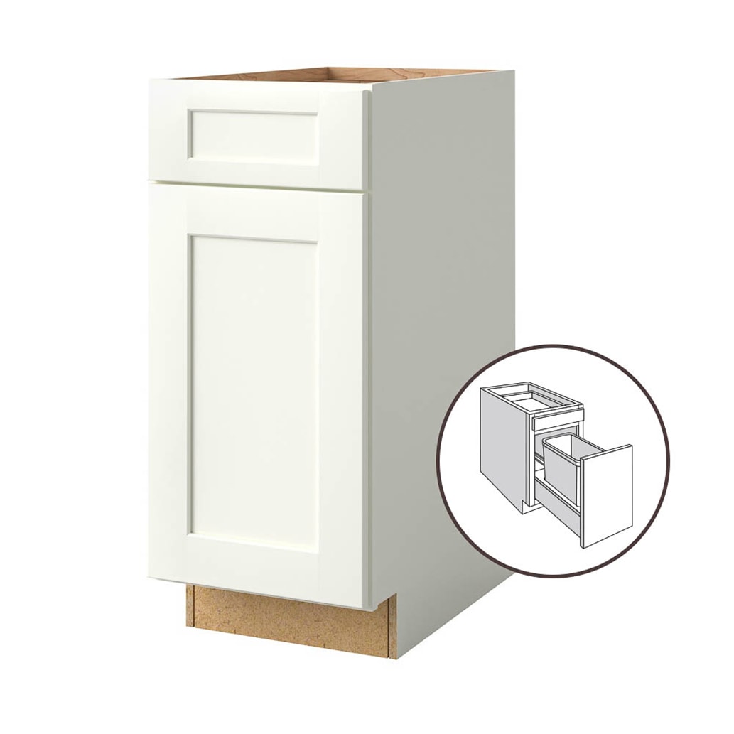 allen + roth Aveley 15-in W x 34.5-in H x 24-in D Linen 1-Drawer Pull-out Wastebasket Base Fully Assembled Cabinet (Flat Panel Shaker Style)