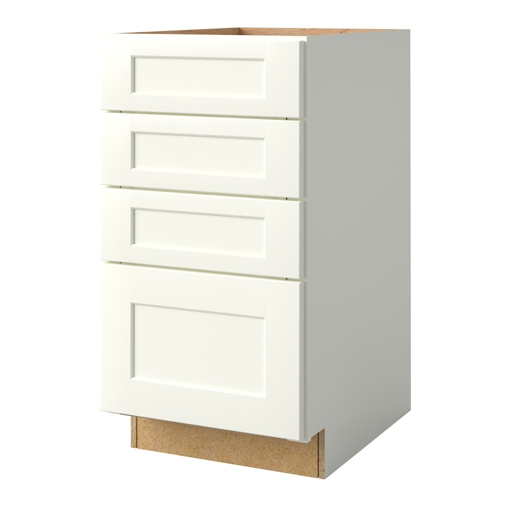 The allen + roth Aveley 4-Drawer Base Cabinet elevates any space with its sleek flat panel style and durable construction. Its painted linen finish adds a touch of elegance to kitchens or bathrooms, while soft-close drawers ensure a quiet and seamless operation. Fully assembled and backed by a lifetime limited warranty, this cabinet is designed for both style and longevity.