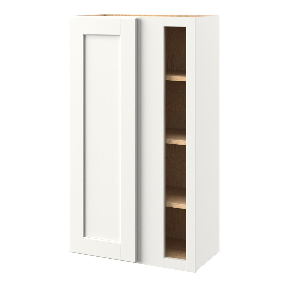 The allen + roth Aveley Blind Corner Wall Cabinet combines modern efficiency with elegant Shaker style, perfect for maximizing storage space in any kitchen. Its painted linen finish, soft-close doors, and fully assembled design ensure durability and convenience. This cabinet seamlessly blends form and function for a streamlined, sophisticated look.
