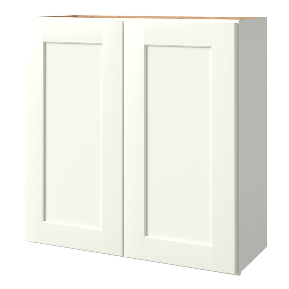 Elevate your space with the allen + roth Aveley Linen Wall Cabinet, featuring a sleek, flat panel Shaker door style with a bright white finish. Fully assembled and crafted for modern homes, this cabinet not only offers beauty but enduring functionality with soft-close doors and an ultra-durable interior finish.
