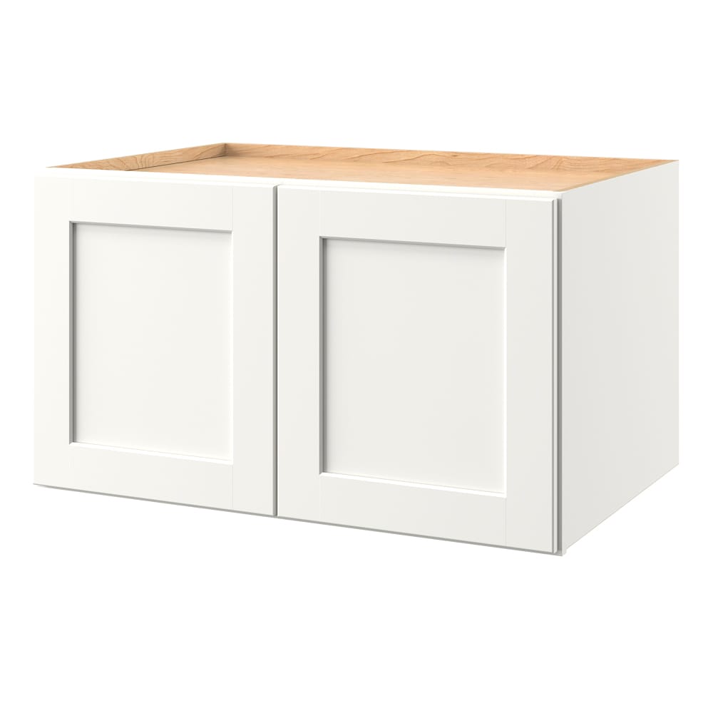 The allen + roth Aveley Linen Wall Cabinet brings together sophisticated style and practical design with its flat panel Shaker doors. Fully assembled and crafted from a blend of hard woods and engineered material, it offers a painted finish for consistent coverage and enhanced durability, adding a refined touch to any modern kitchen setting.