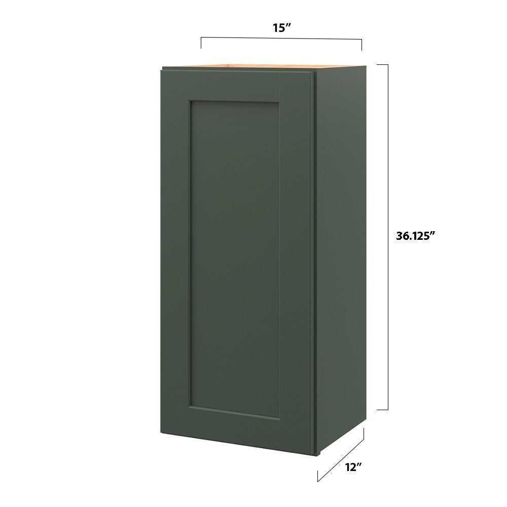 allen + roth Galway 15-in W x 36.125-in H x 12-in D Sage Wall Fully Assembled Cabinet (Flat Panel Shaker Door Style)