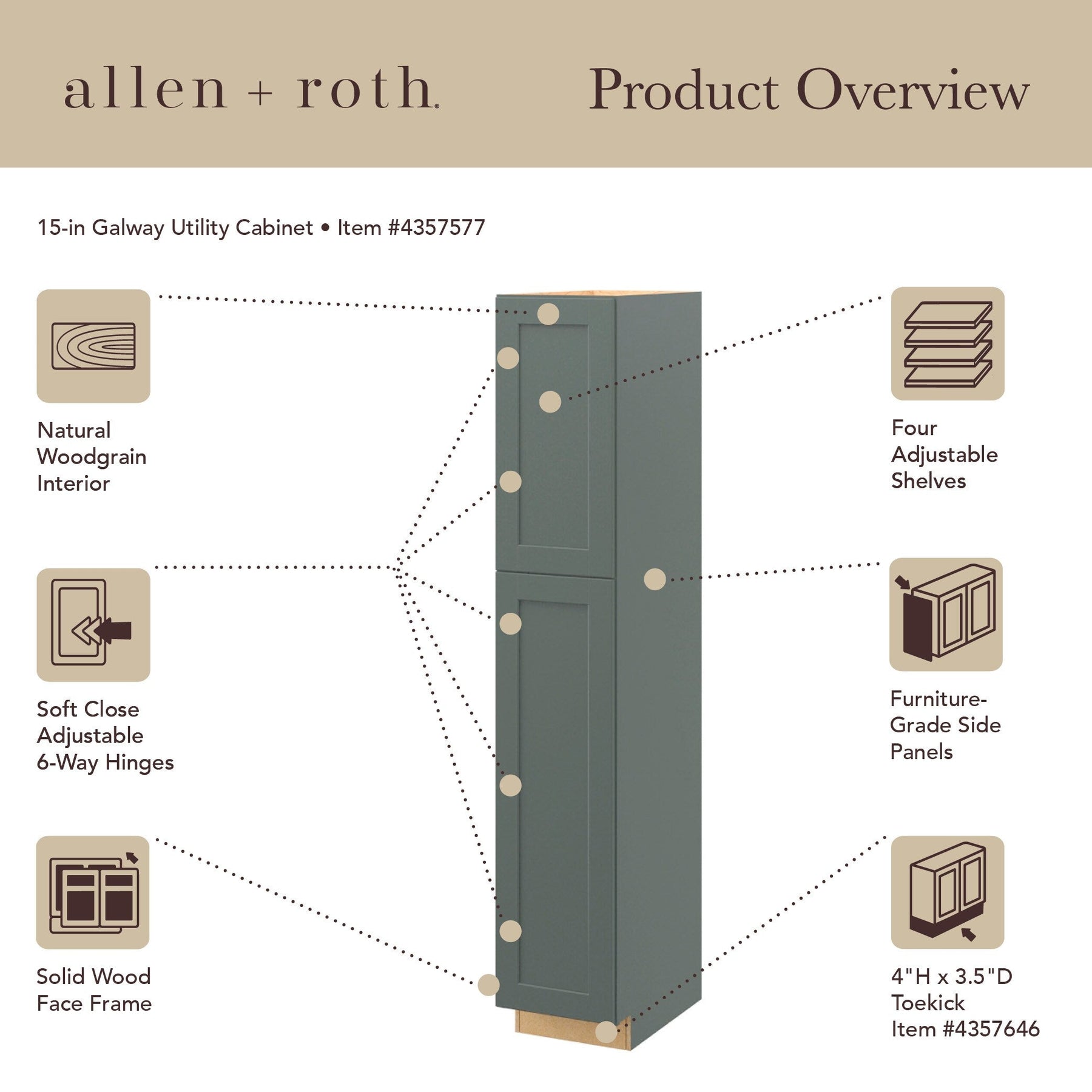 allen + roth Galway 15-in W x 84-in H x 24-in D Sage Pantry Fully Assembled Cabinet (Flat Panel Shaker Door Style)