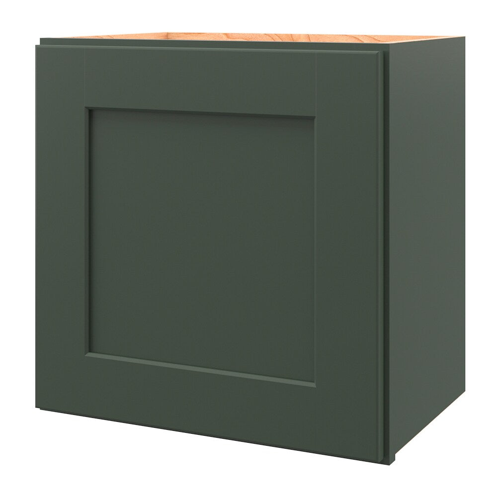 The allen + roth Galway Sage Wall Cabinet boasts a stylish Shaker door design that seamlessly blends modern aesthetics with timeless functionality. This fully assembled cabinet is crafted for durability with a beautiful, painted finish that adds a pop of sophisticated color while offering effortless soft-close doors.
