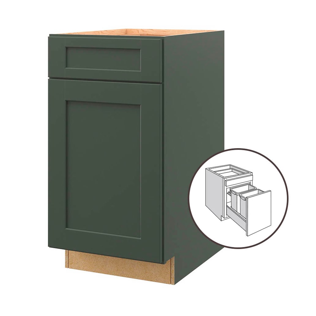 allen + roth Galway 18-in W x 34.5-in H x 24-in D Sage 1-Drawer Pull-out Wastebasket Base Fully Assembled Cabinet (Flat Panel Shaker Style)