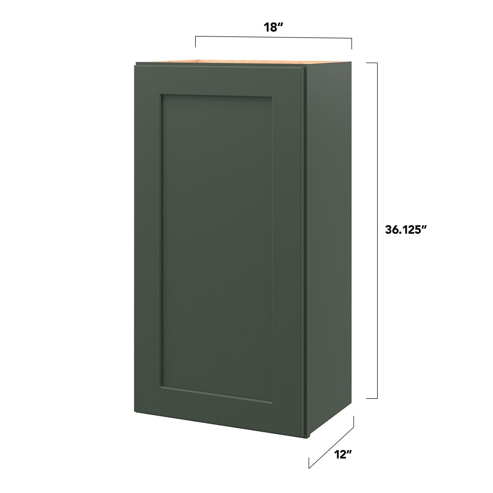 allen + roth Galway 18-in W x 36.125-in H x 12-in D Sage Wall Fully Assembled Cabinet (Flat Panel Shaker Door Style)