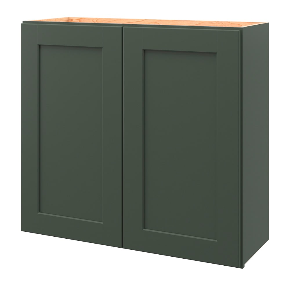 Enhance any space with the allen + roth Galway Sage Wall Cabinet, featuring a sturdy, fully assembled design with modern Shaker-style doors. This elegant cabinetry brings a touch of nature into your home with its serene, dark green finish.