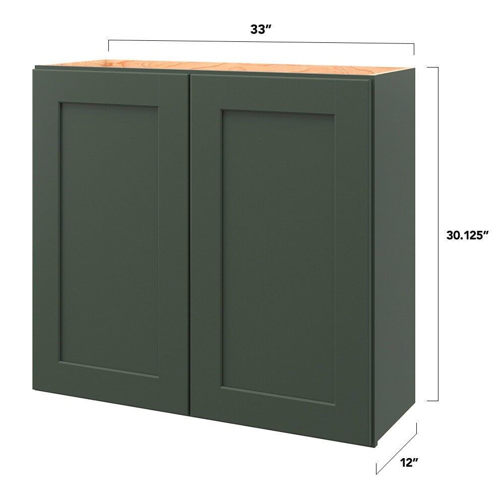 allen + roth Galway 33-in W x 30.125-in H x 12-in D Sage Wall Fully Assembled Cabinet (Flat Panel Shaker Door Style)
