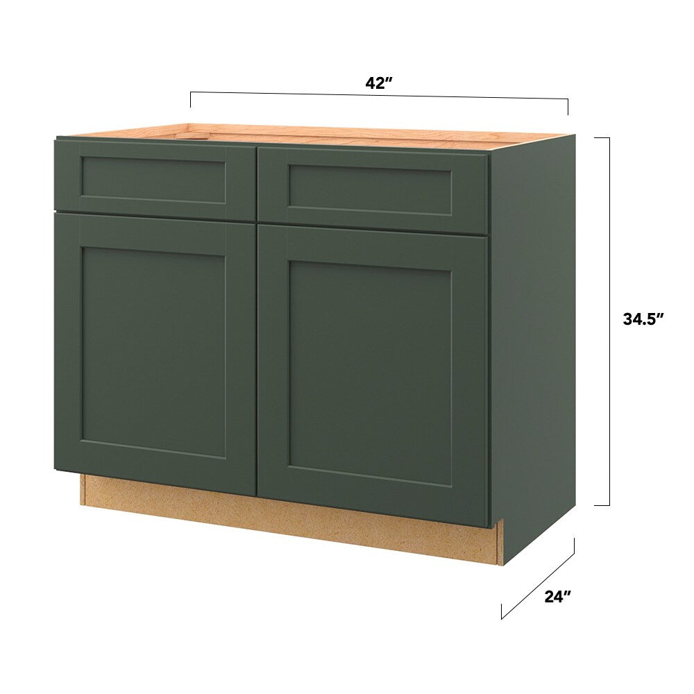 Elevate your kitchen or bathroom design with the allen + roth Galway 42-inch Sink Base Cabinet. Featuring a distinctive sage finish, this modern Shaker-style cabinet comes fully assembled with soft-close doors that offer smooth, silent closure. Its robust construction and semi-custom design ensure style and functionality that withstands the test of time.