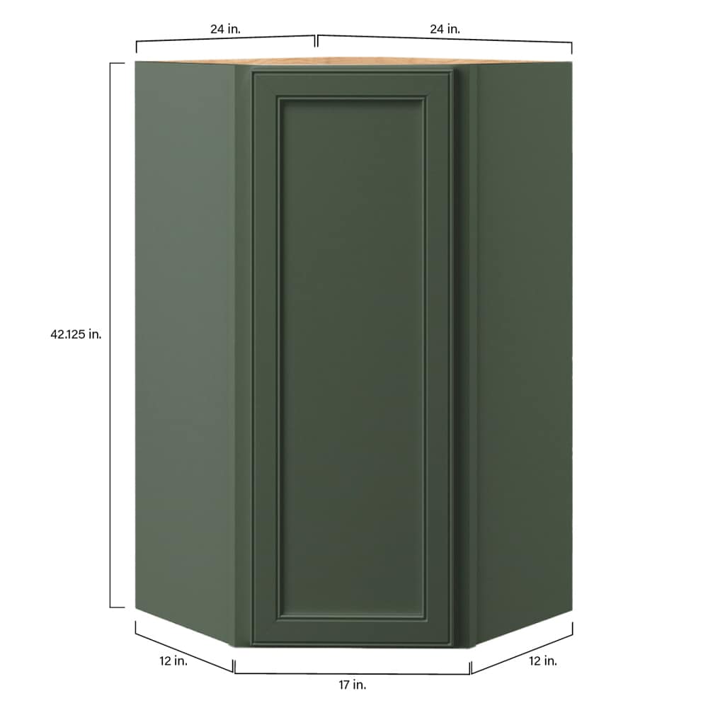 allen + roth Heathrow 24-in W x 42.125-in H x 12-in D Sage Diagonal Corner Wall Fully Assembled Cabinet (Recessed Panel Square Style)