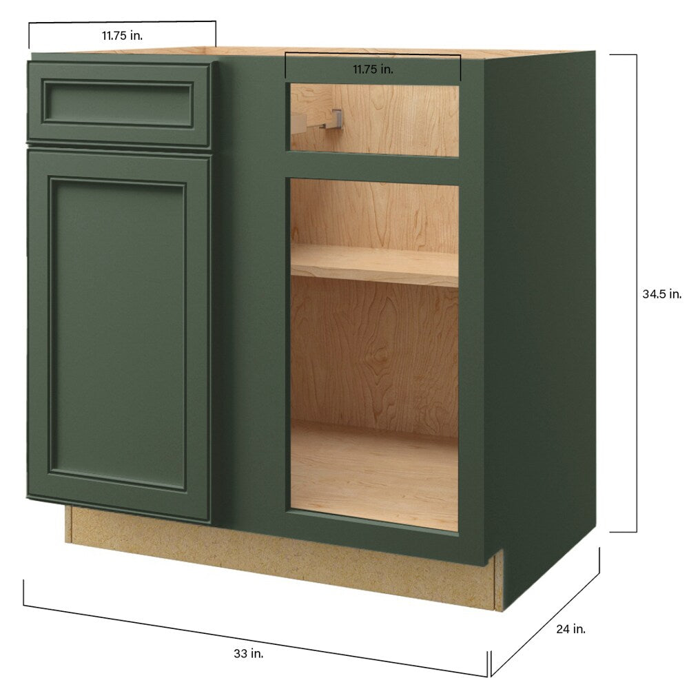 allen + roth Heathrow 33-in W x 34.5-in H x 24-in D Sage Blind 1-Drawer Corner Base Fully Assembled Cabinet (Recessed Panel Square Style)