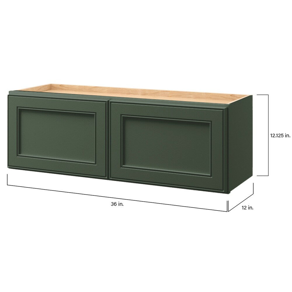 allen + roth Heathrow 36-in W x 12.125-in H x 12-in D Sage Wall Fully Assembled Cabinet (Recessed Panel Square Door Style)