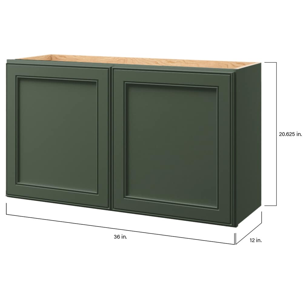 allen + roth Heathrow 36-in W x 20.625-in H x 12-in D Sage Wall Fully Assembled Cabinet (Recessed Panel Square Door Style)
