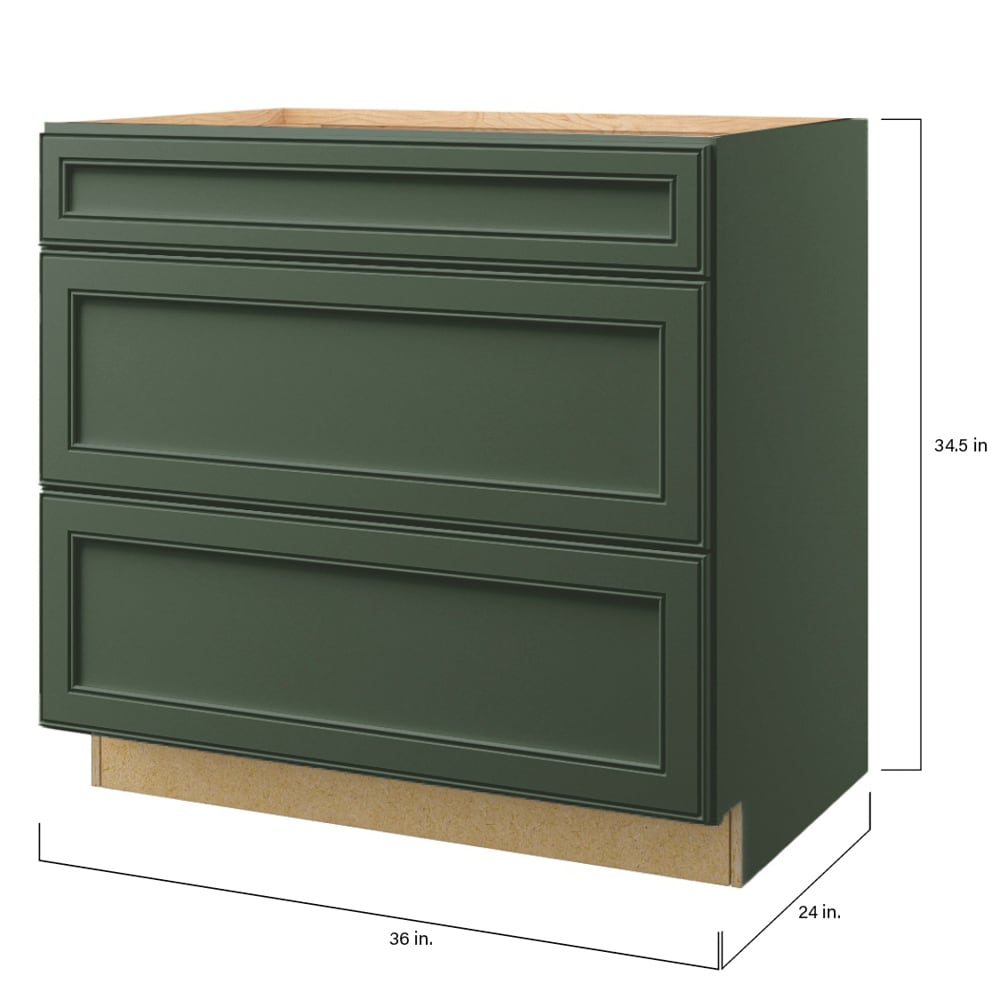 allen + roth Heathrow 36-in W x 34.5-in H x 24-in D Sage 3-Drawer Base Fully Assembled Cabinet (Recessed Panel Style)