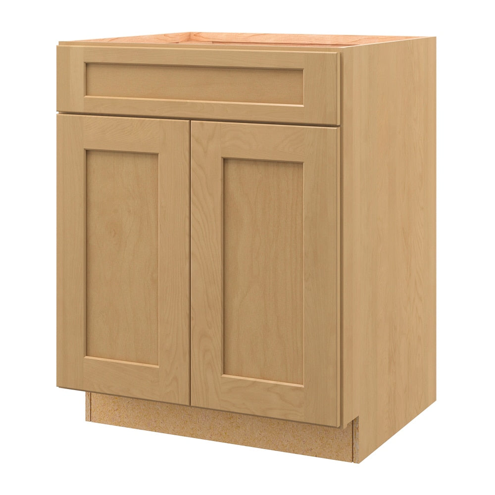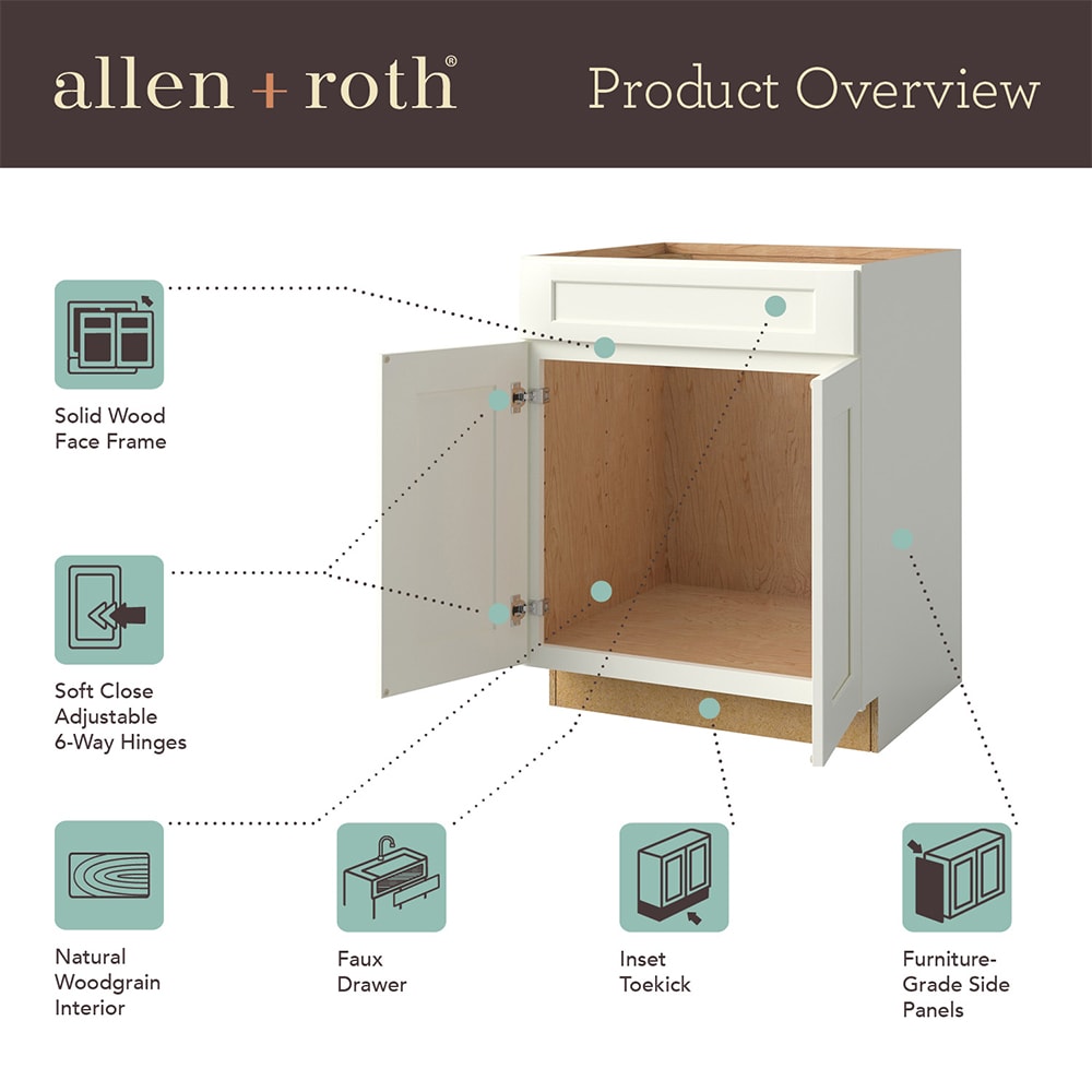 Elevate your kitchen design with the allen + roth Innsbrook Sink Base Cabinet. Crafted with a timeless Shaker style, this cabinet features a warm Rye finish and state-of-the-art soft-close technology for seamless, silent operation. Its fully assembled construction ensures hassle-free installation, bringing beauty and convenience to your home improvement project.