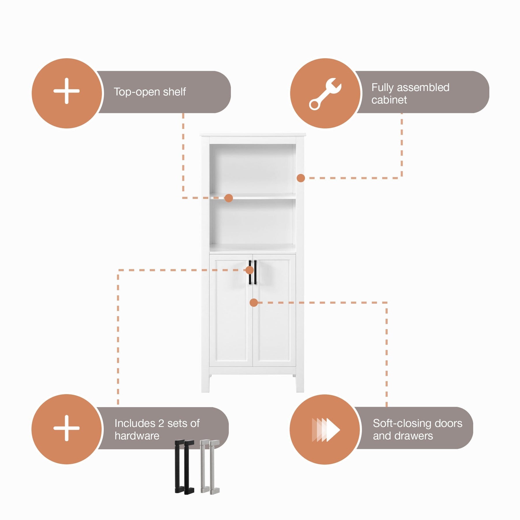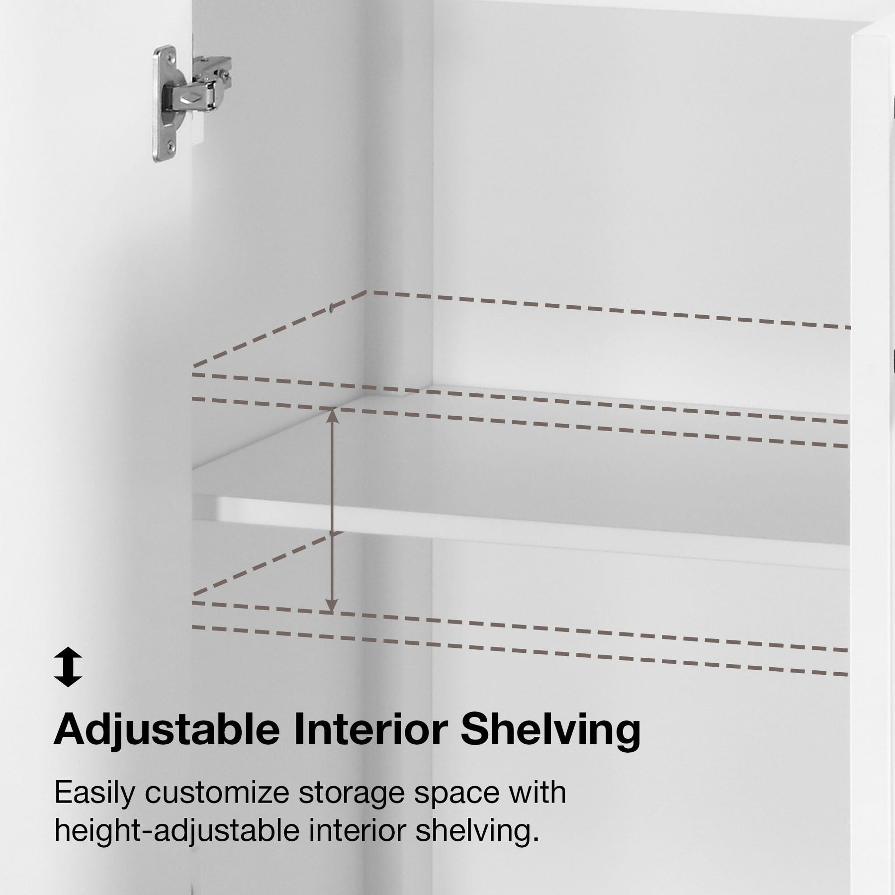 • Flexible Design: Includes adjustable shelving and two hardware options—matte black and brushed nickel—to fit your decor.