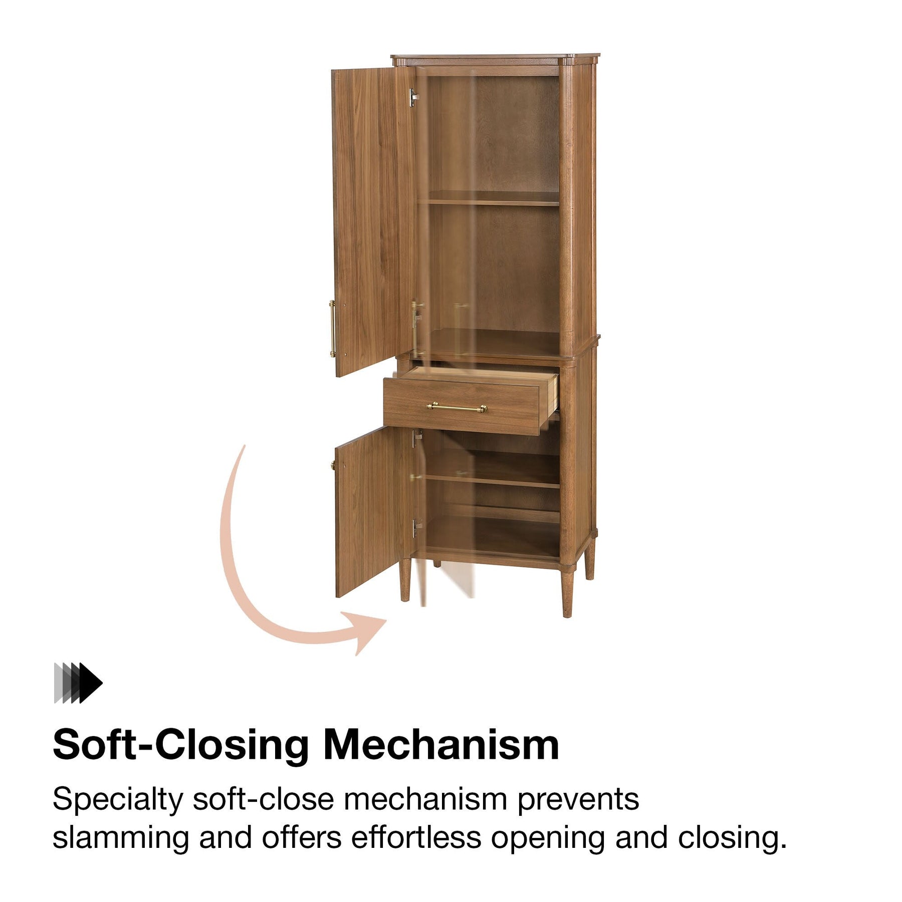 Walnut Freestanding Soft Close Linen Cabinet