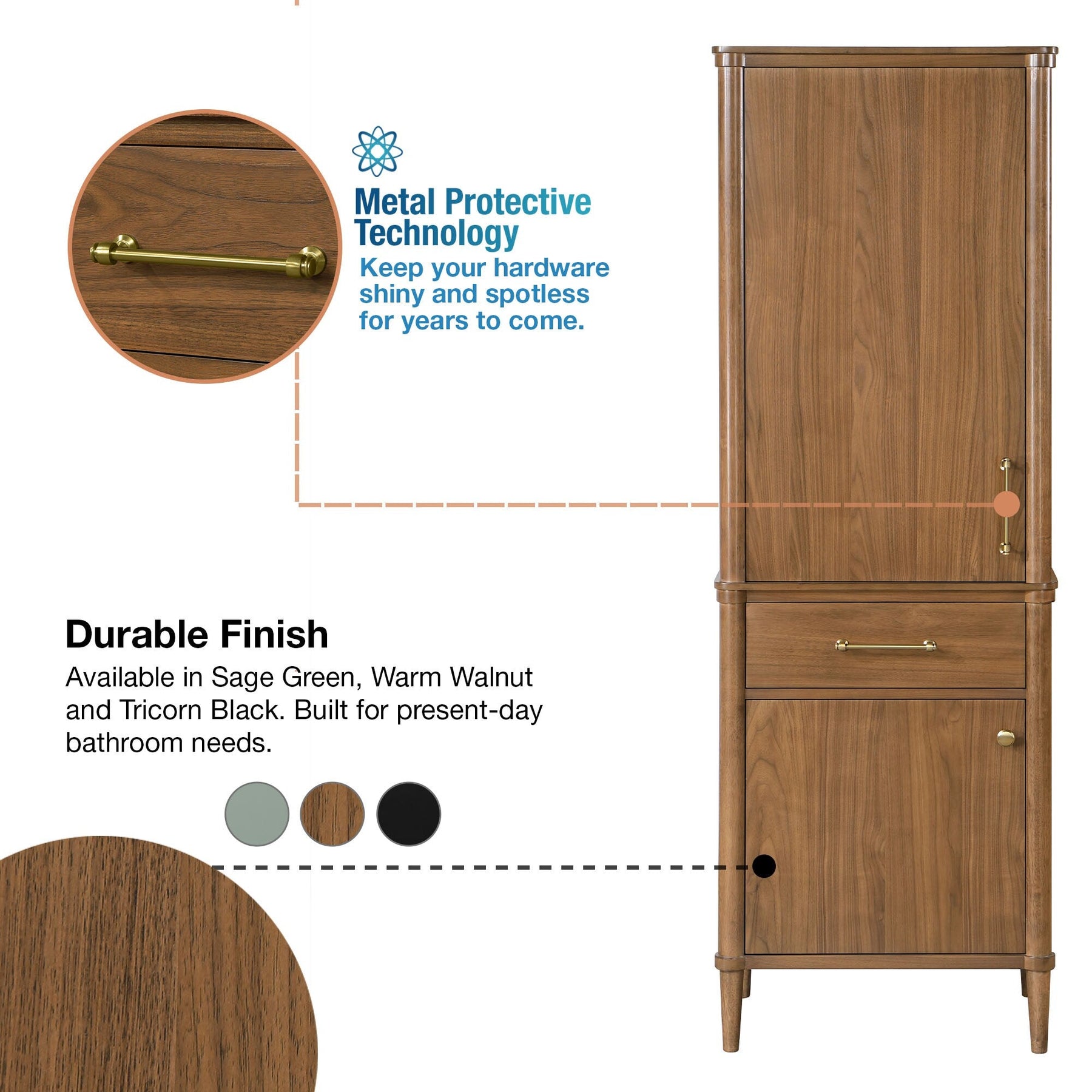 • Warm Walnut Finish: Adds a touch of elegance to any bathroom decor.
