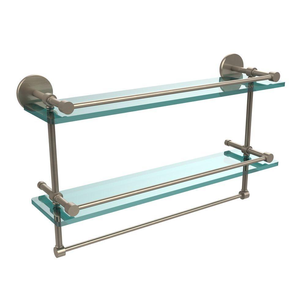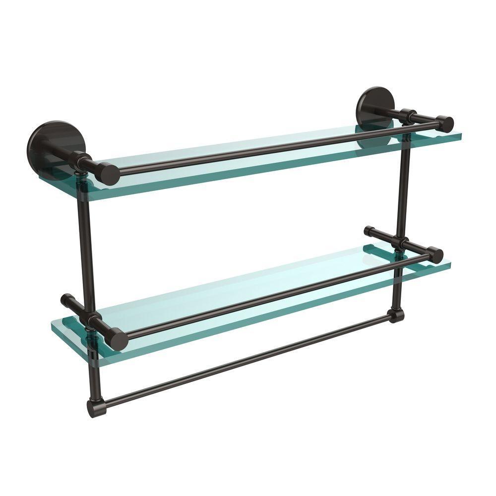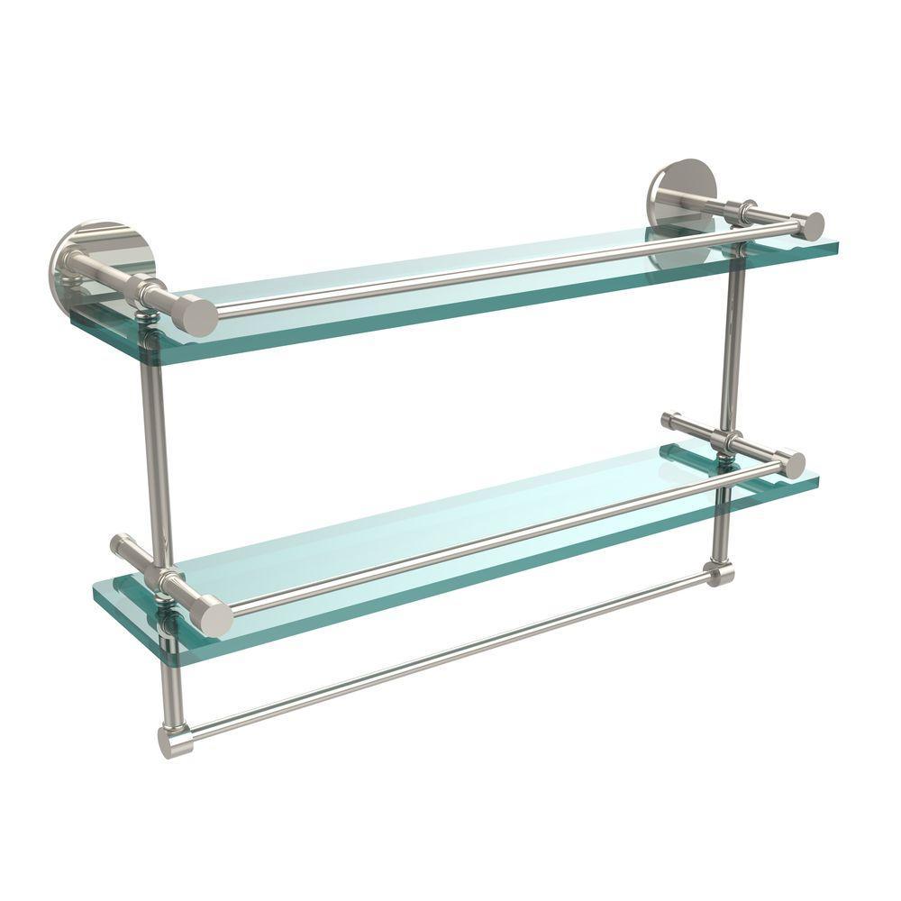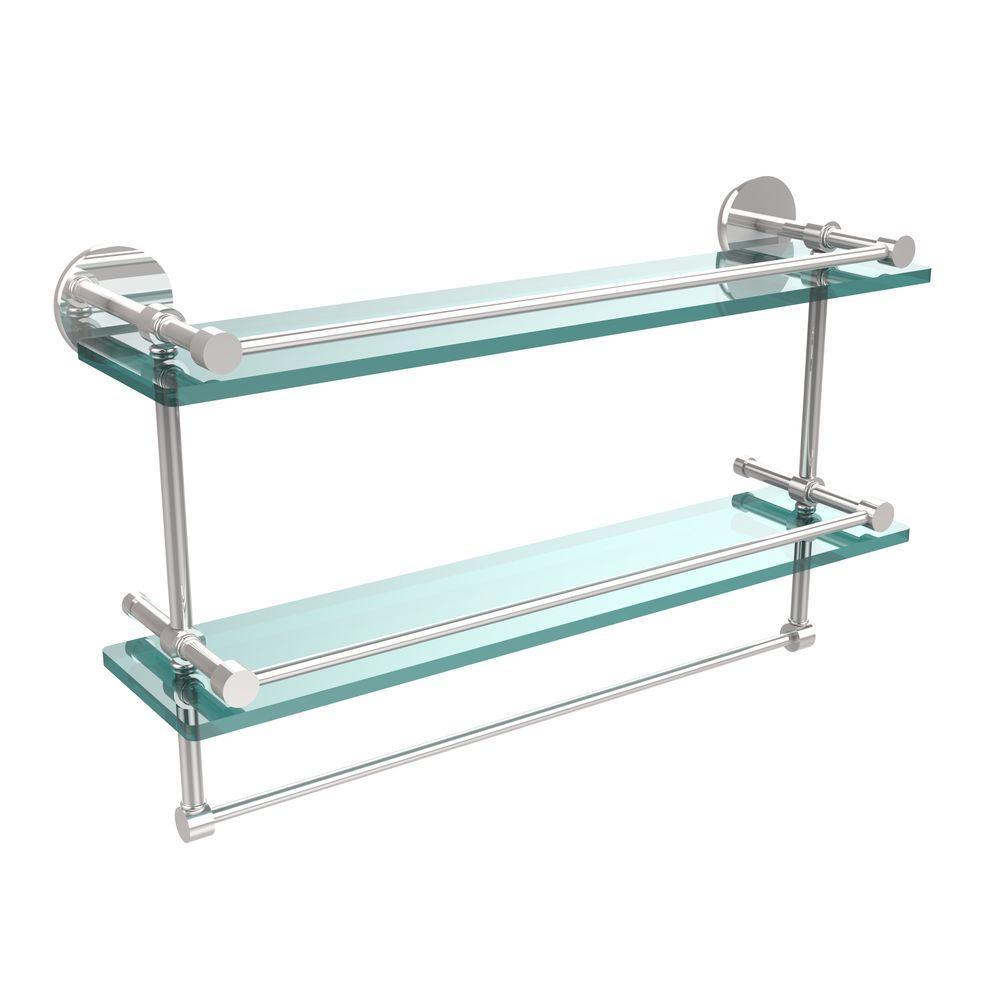 22 in. L x 12 in. H x 5 in. W 2-Tier Clear Glass Bathroom Shelf with Towel Bar in Polished Chrome