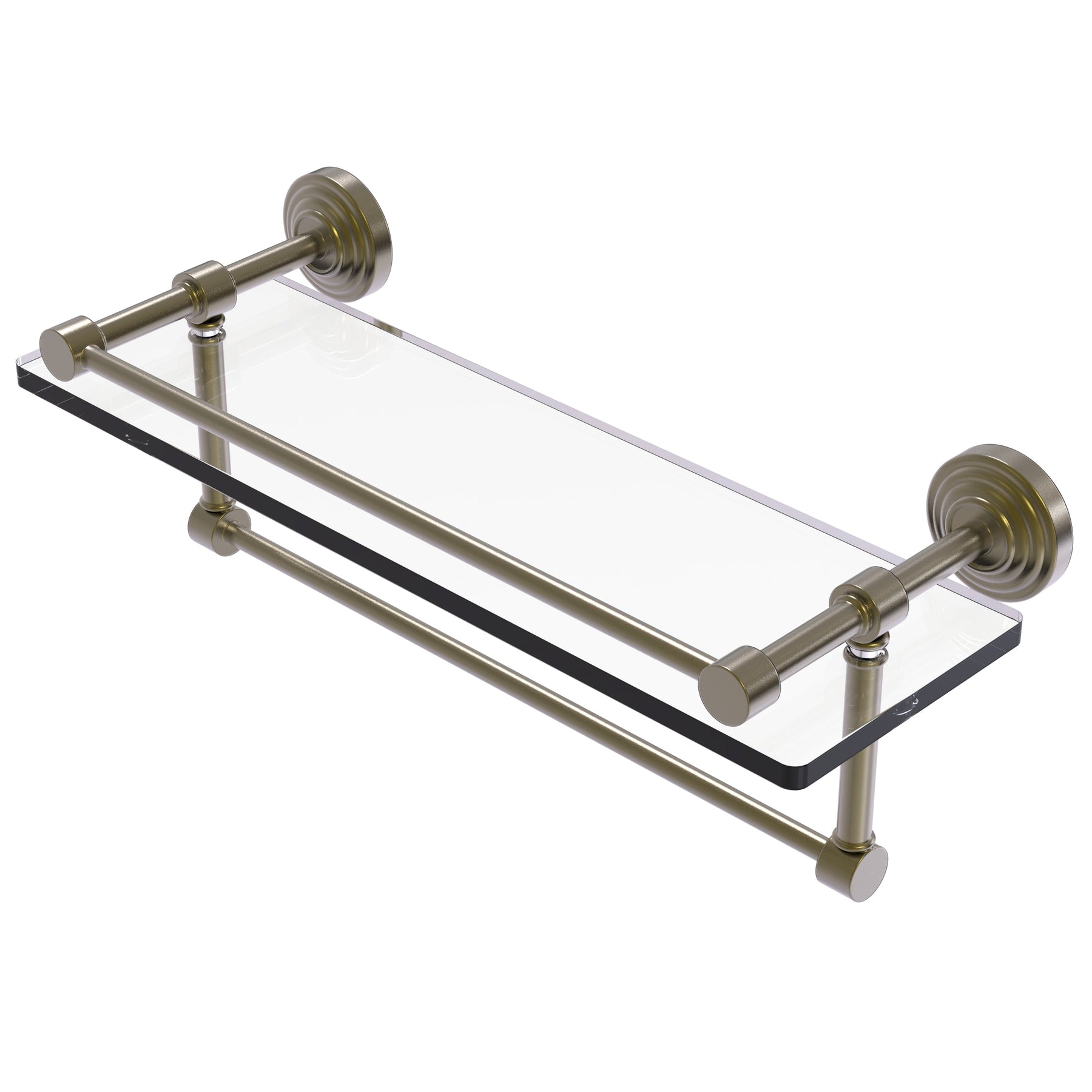 Clear glass shelf with towel bar, 16"
