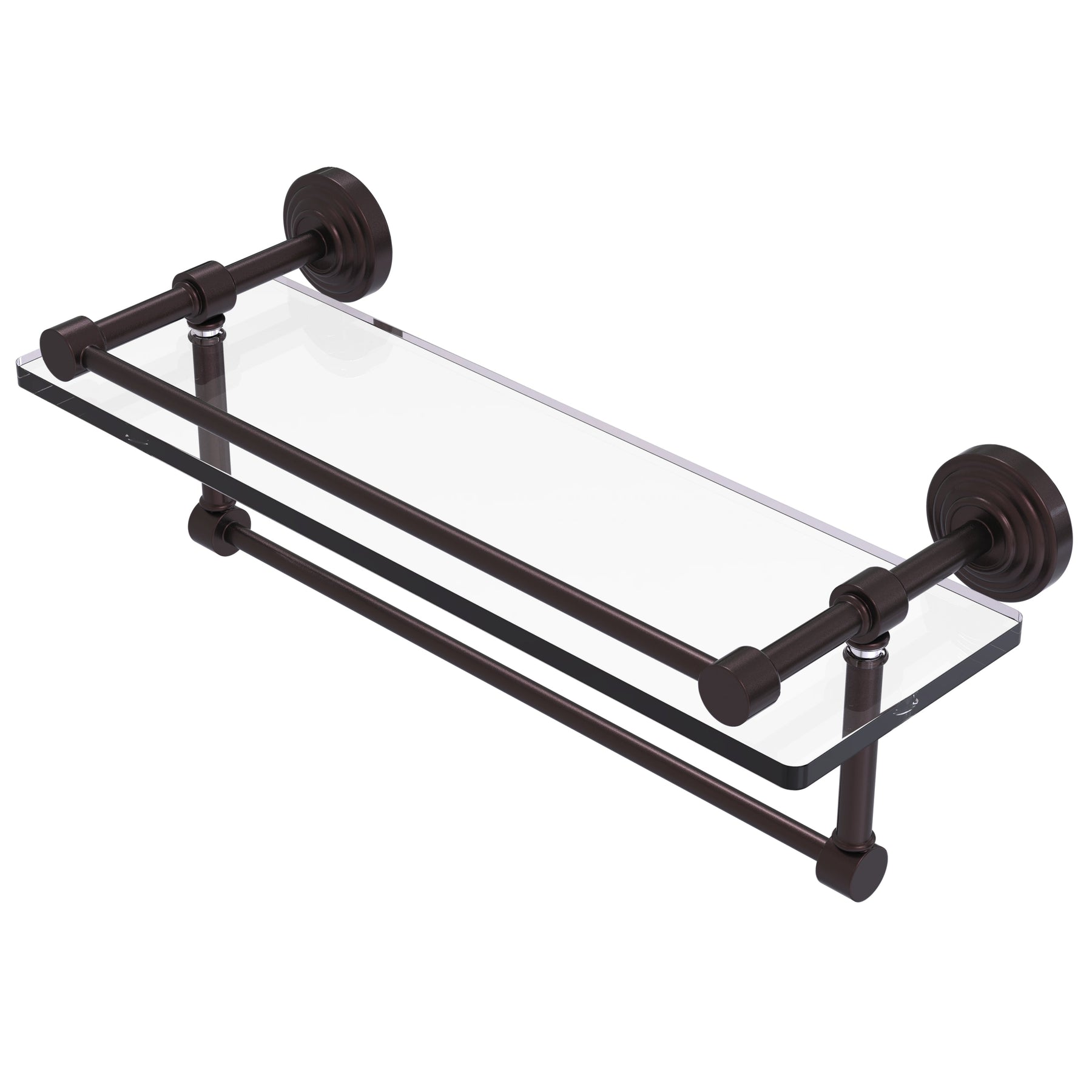 Allied Brass 16 in. x 5 in. x 5 in. Clear Glass Bathroom Shelf with Towel Bar – Oil Rubbed Bronze