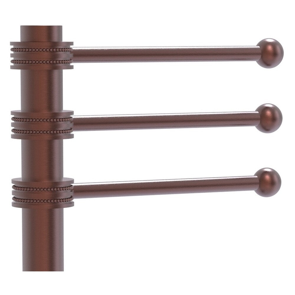 Elevate your bath with a freestanding towel rack crafted from solid brass and finished in antique copper. Three pivoting arms keep hand towels and washcloths within reach, while a weighted base adds stability and protects surfaces.