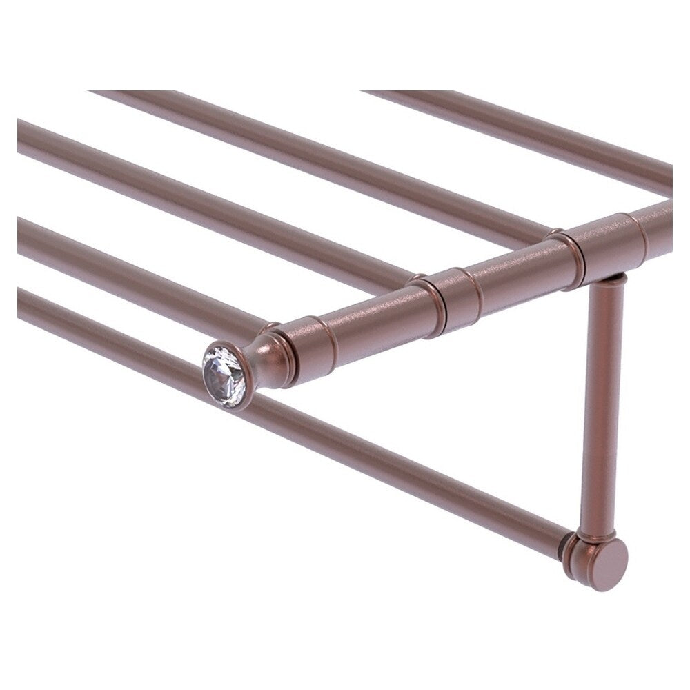 Elevate bathroom storage with this wall-mounted Allied Brass towel shelf from the Carolina Crystal collection. Crafted from solid brass with an antique copper finish, it features crystal-accented rails and an integrated towel bar to dry and display linens while saving space.