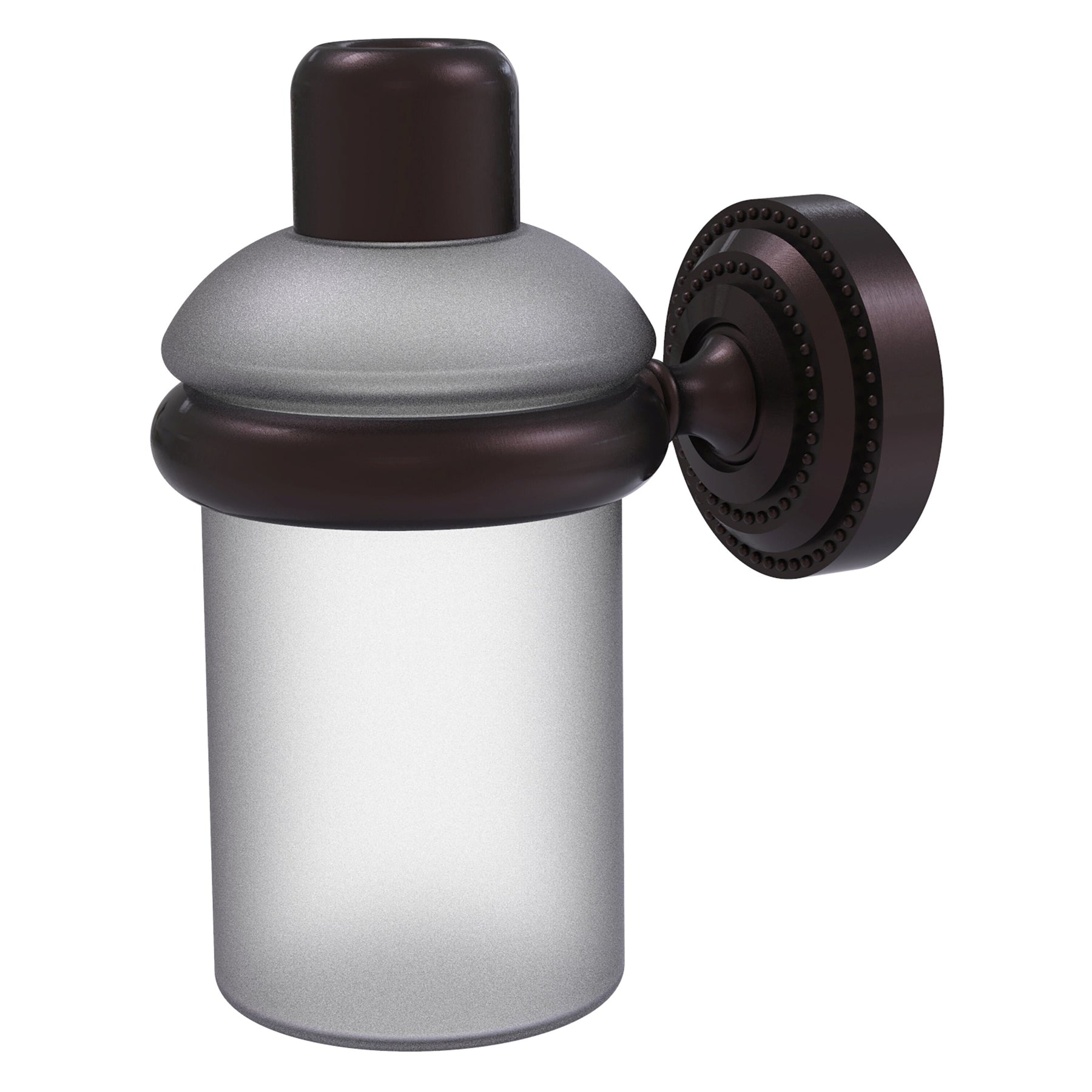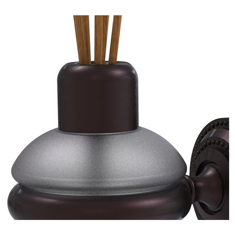 This Dottingham wall-mounted reed diffuser holder by Allied Brass adds elegant fragrance to your bath while freeing up counter space. Crafted from solid brass with an antique bronze finish, it features a removable frosted glass container and classic beaded detailing.