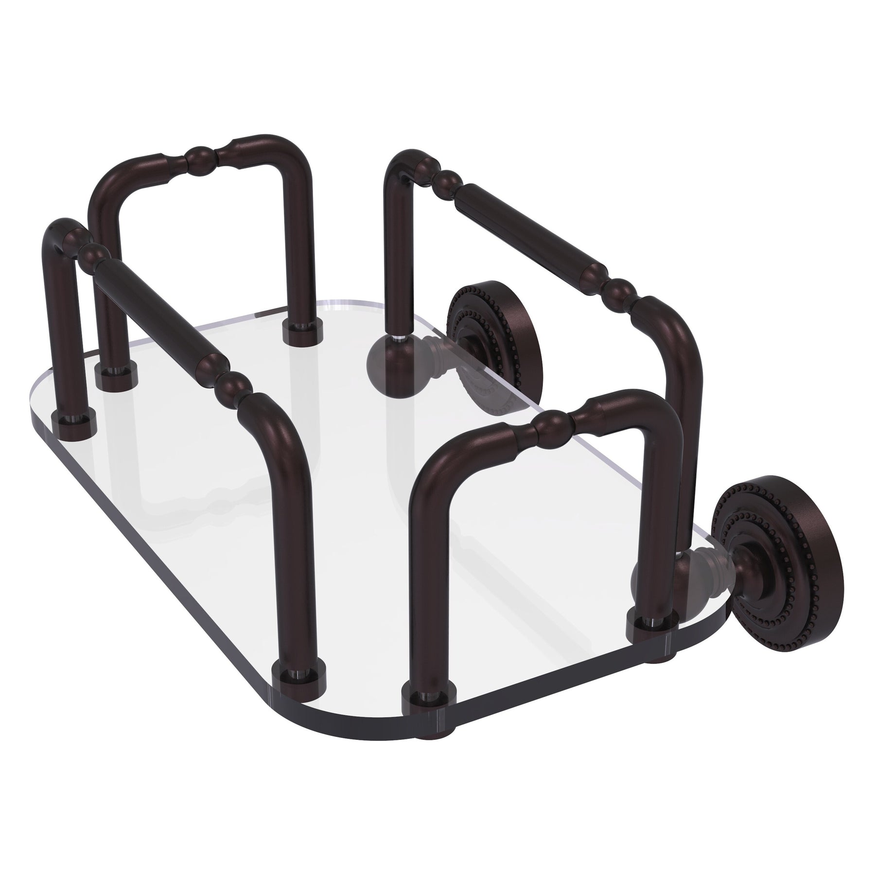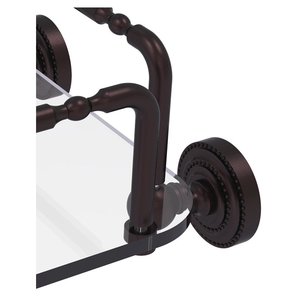 A compact, wall-mounted towel rack from Allied Brass’ Dottingham collection, crafted from solid brass with an antique bronze finish. Tempered glass tray and concealed mounting create a sturdy, space-saving accent for guest towels or a tissue box.