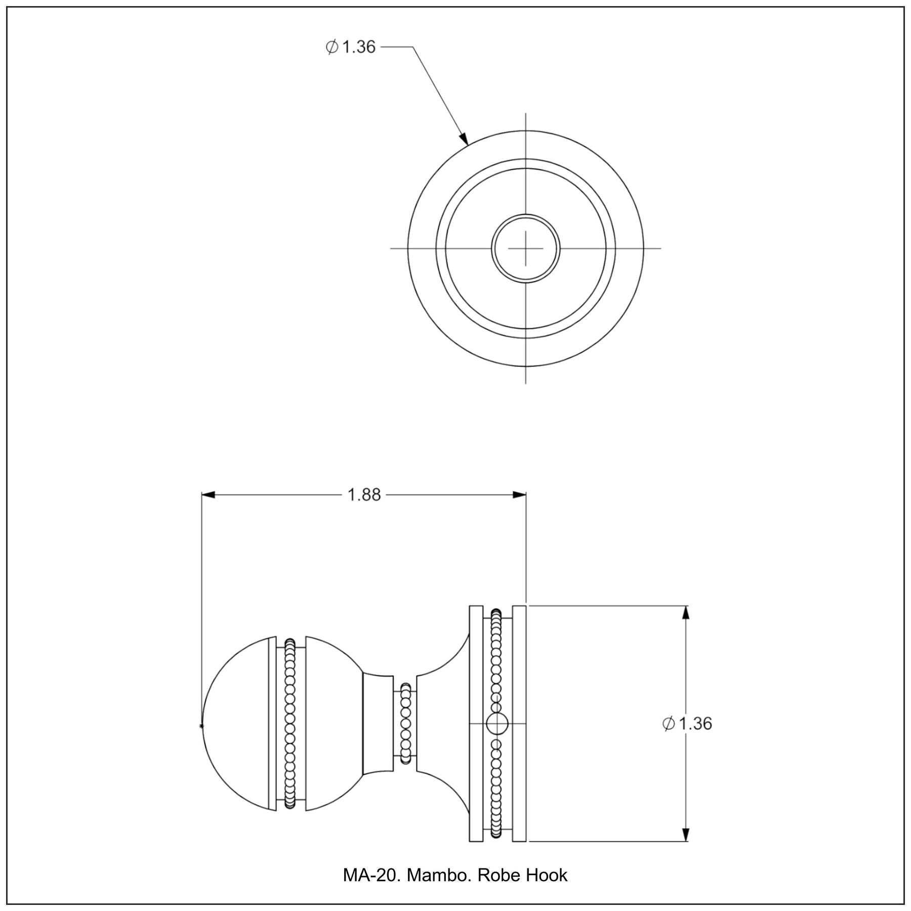 A: Approx. 1.36 in. base diameter with a 1.88 in. projection (single hook).