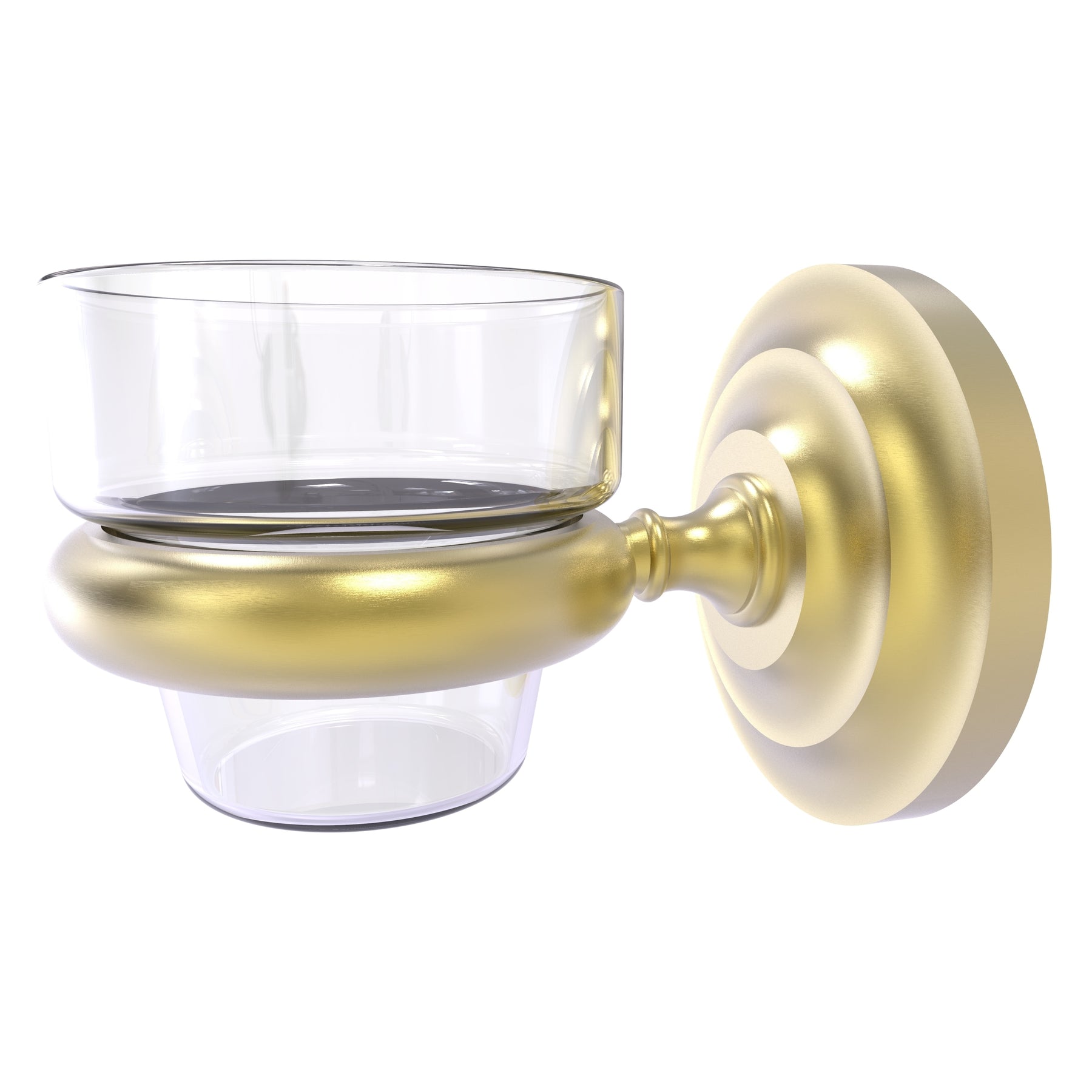 Elevate your bathroom with Allied Brass’s Prestige Que New set in satin brass, featuring solid brass construction and a wall-mounted design that saves space. The collection’s hand-polished finish and concealed mounting deliver a sleek, timeless look with lasting durability.