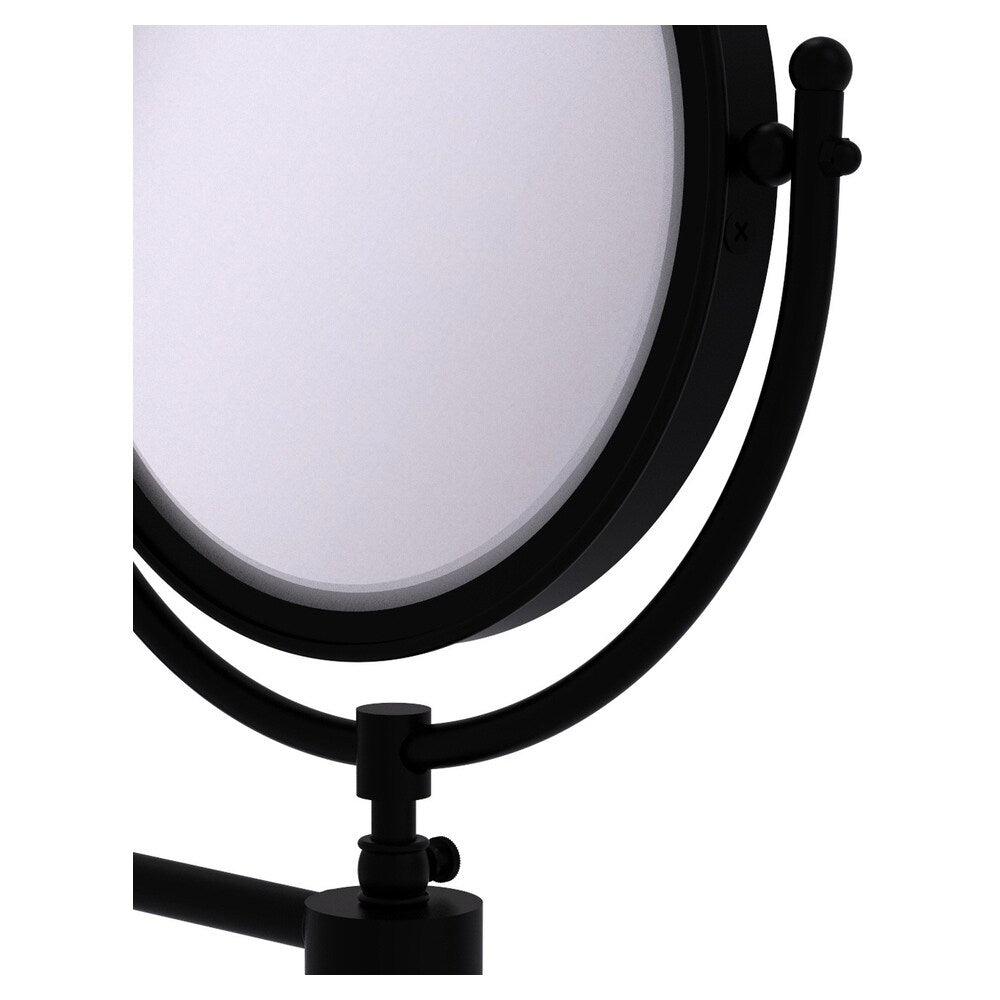 Elevate your grooming routine with this Soho series wall-mounted vanity mirror by Allied Brass. The 8-inch, double-sided mirror offers 2x magnification and pivots for flexible viewing, while the solid brass construction in a matte black finish delivers lasting durability and modern style.
