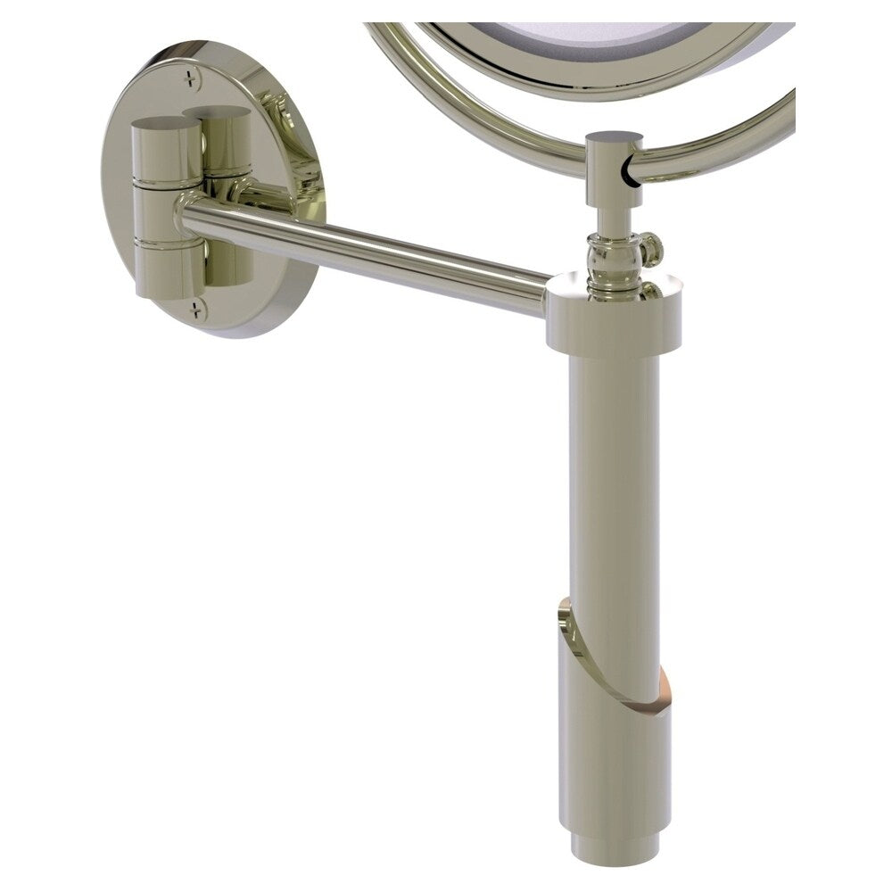 This Allied Brass Tribecca wall-mounted vanity mirror combines solid brass construction with a polished nickel finish for enduring style. The 8-inch, double-sided mirror offers 2x magnification and adjustable tilt for precise grooming in compact spaces.