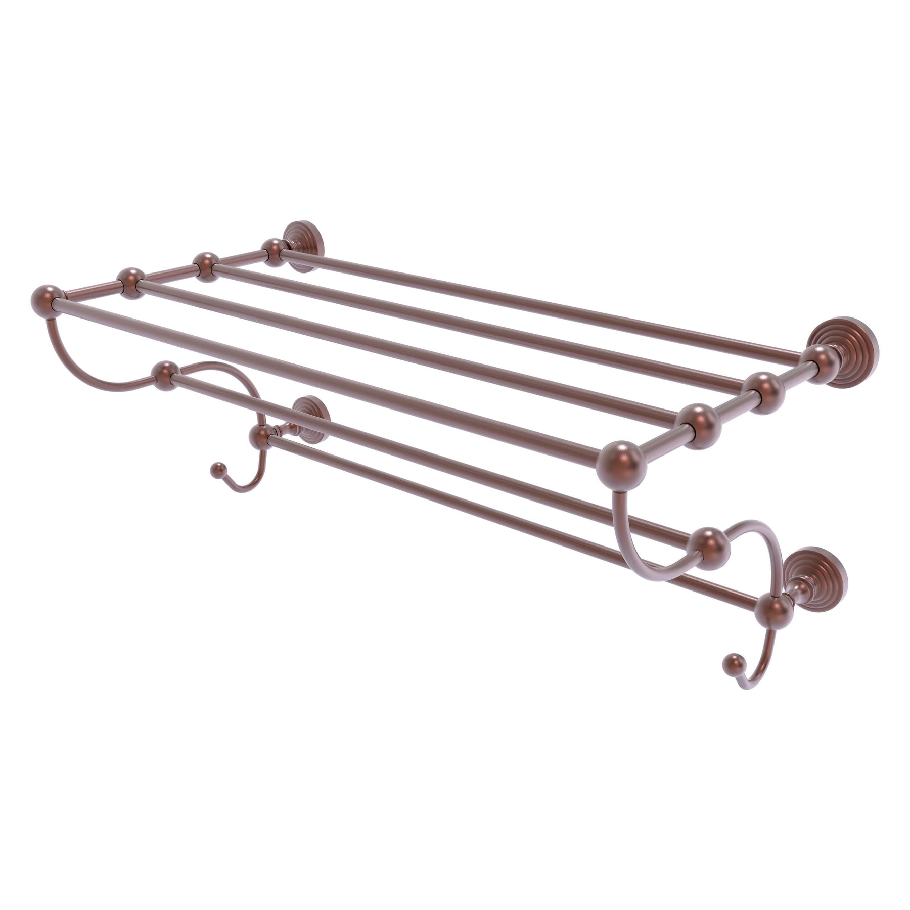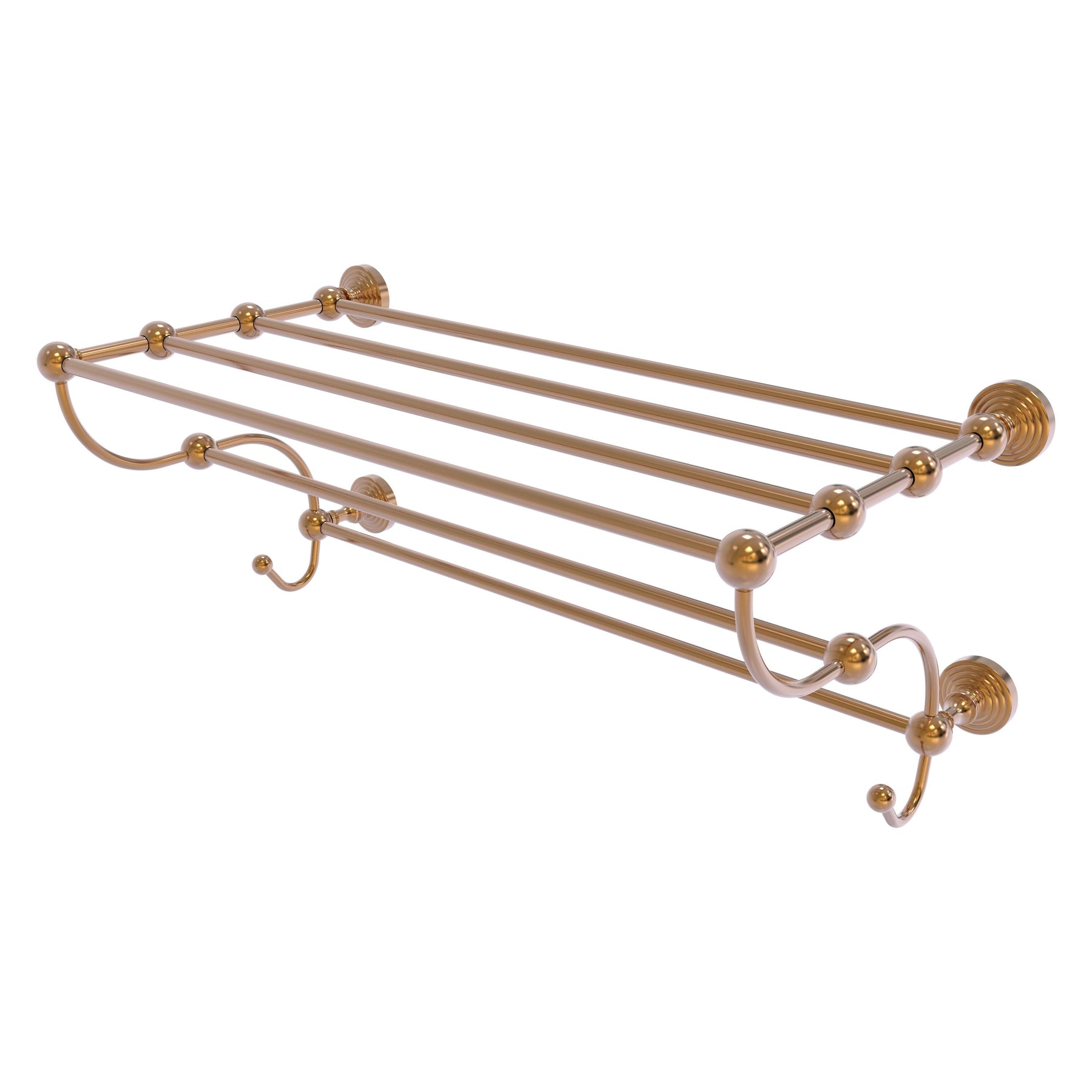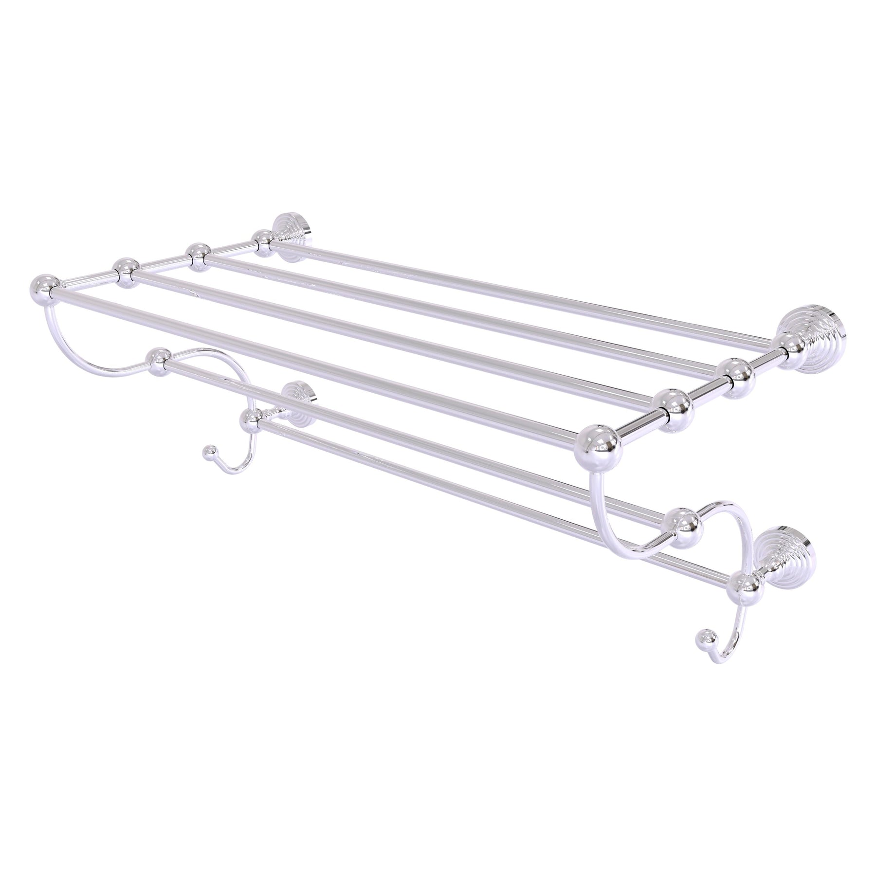 A luxury wall-mounted train rack towel shelf from Allied Brass’ Waverly Place collection, crafted from solid brass with hand-polished designer finishes. Space-saving two-tier design with integrated towel bars and concealed mounting for a refined, durable installation.