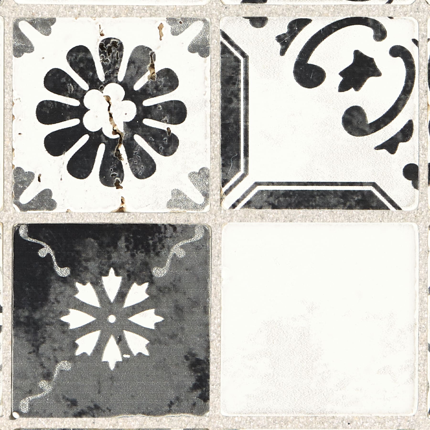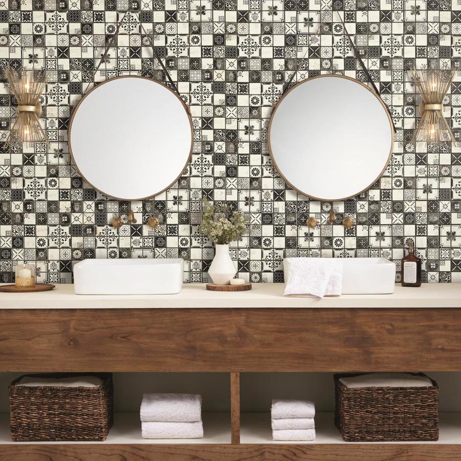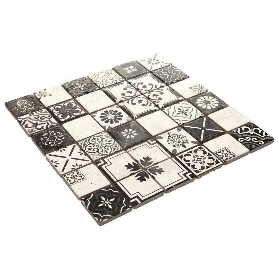 Bring artisanal pattern to backsplashes and feature walls with this glazed natural travertine mosaic from American Olean’s Genuine Stone collection. The 12-in x 12-in sheet features a mix of black-and-white Moroccan-inspired motifs on mesh backing for easy installation, ideal for indoor walls and fireplace facades.