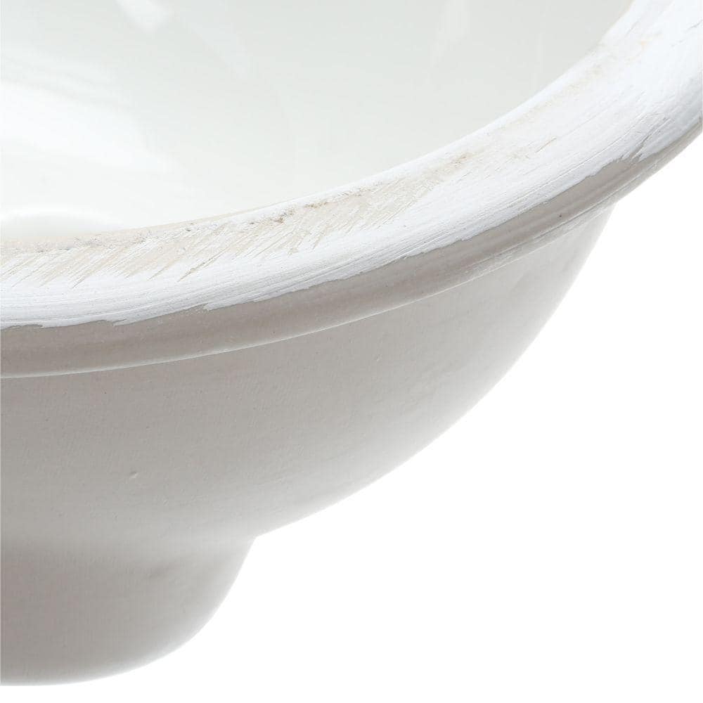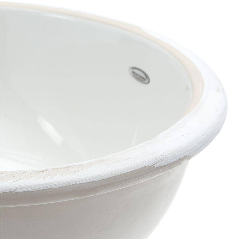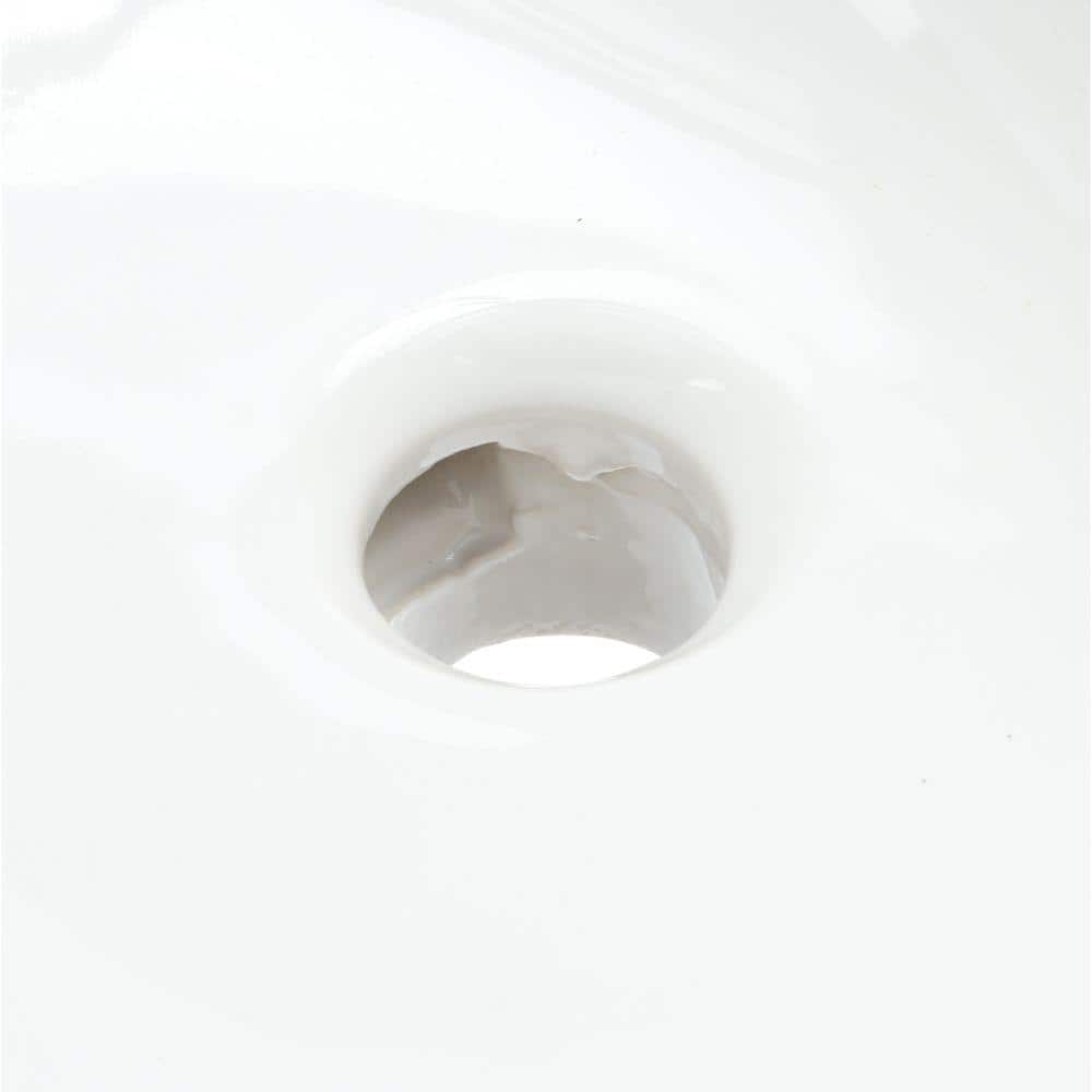 Compact, oval undermount sink crafted from durable vitreous china for long-lasting performance. Sleek white, gloss finish complements modern and minimalist baths, ideal for small bathrooms and powder rooms. No faucet holes for versatile deck-mounted faucet options; includes cut-out template and mounting kit.