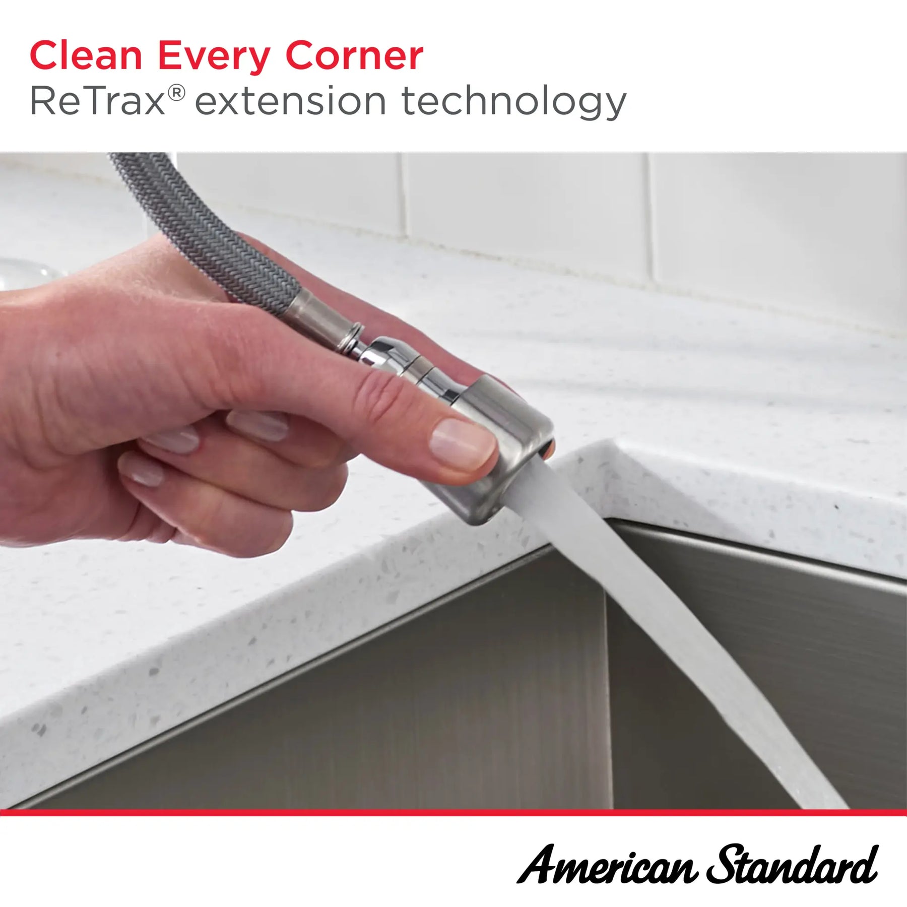 • Pull-Down Convenience: Single-function aerated spray with smooth ReTrax retraction to reach every corner
