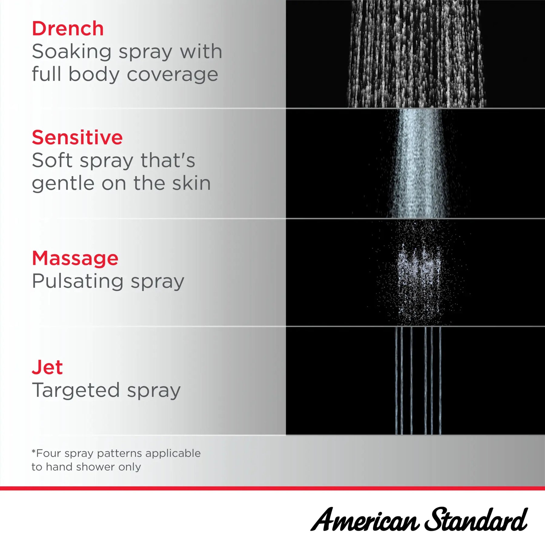 • 4-Function Hand Shower: Drench, Sensitive, Massage, and Jet spray patterns