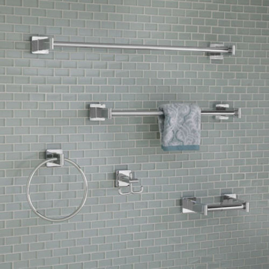 This American Standard double towel hook features durable metal construction with a satin nickel finish for a sleek, modern look. Wall-mounted with concealed hardware, it provides two sturdy hooks to keep towels or robes organized in any bathroom.