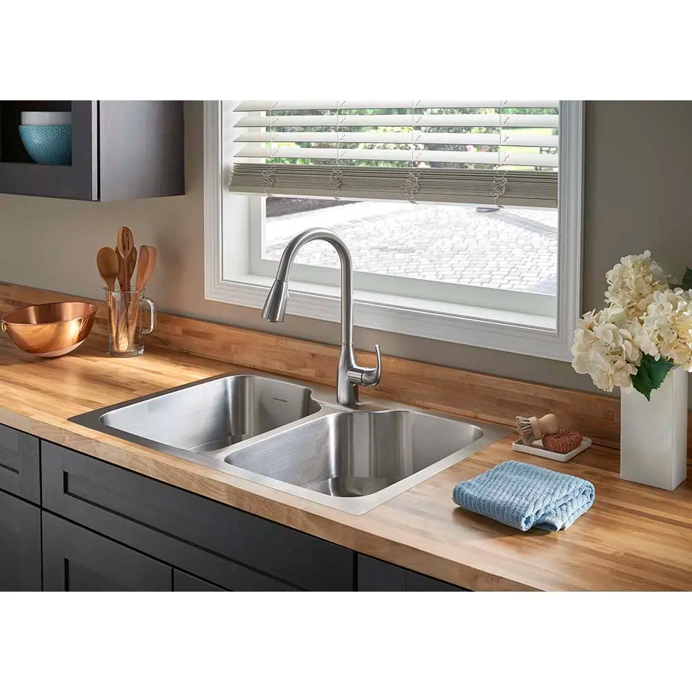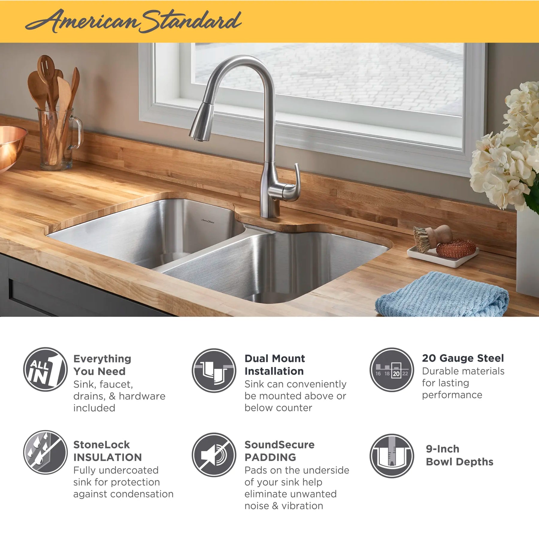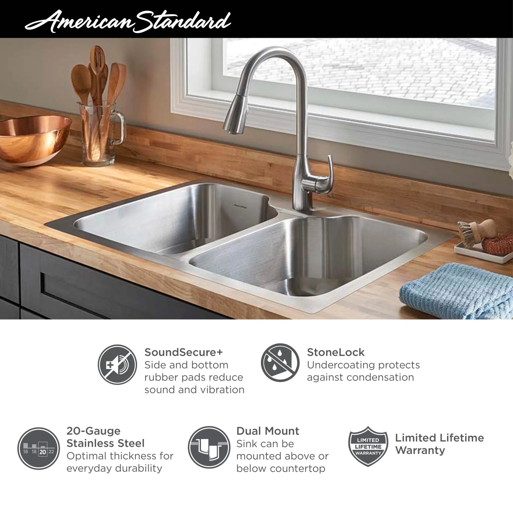 American Standard Tulsa 33-in x 22-in Stainless Steel Double Equal Bowl Dual-Mount 1-Hole Kitchen Sink All-in-One Kit
