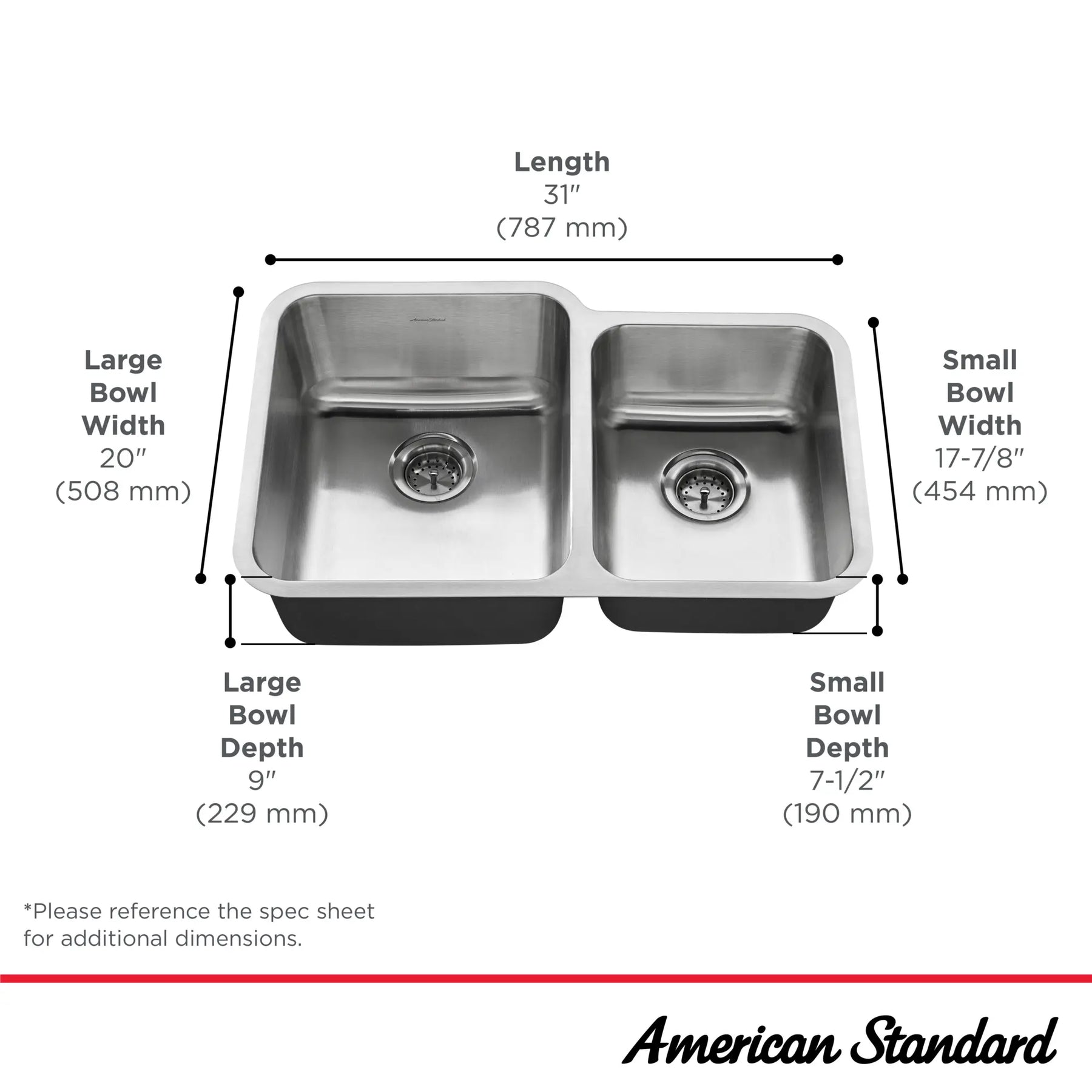 American Standard Danville 31-in x 20-in Stainless Steel Double Offset Bowl Undermount Residential Kitchen Sink