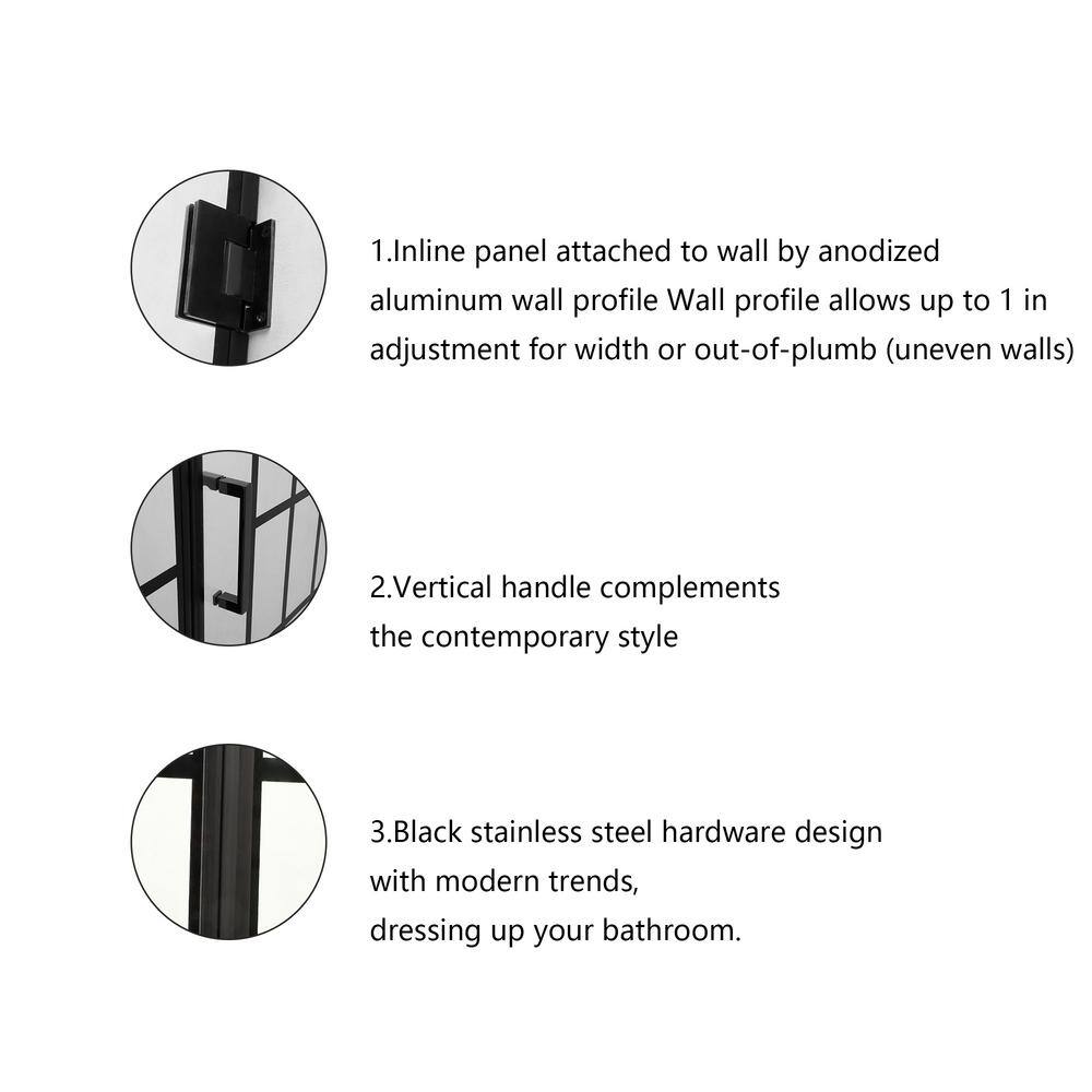 The Angeles Home Frameless Shower Door transforms any ordinary bathroom into a sophisticated retreat with its matte black finish and captivating Linea Toulon pattern glass. Its contemporary design marries elegance with modern flair, enriching the space with visual depth. Embrace its artful aesthetic by pairing it with minimalist decor and lush green plants, enhancing the bathroom's serene ambiance. This door is more than just a functional piece; it's an essential element of luxurious living that adds an unparalleled touch of class.