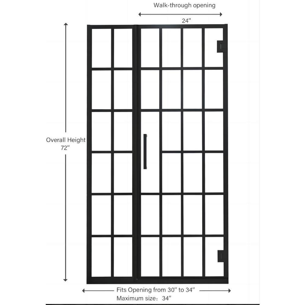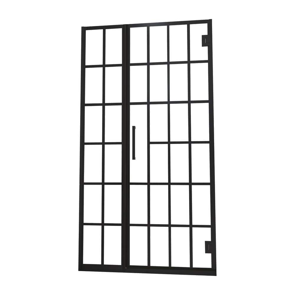 ANGELES HOME 34 in. W x 72 in. H Pivot Frameless Shower Door in Matte Black with Pattern Glass