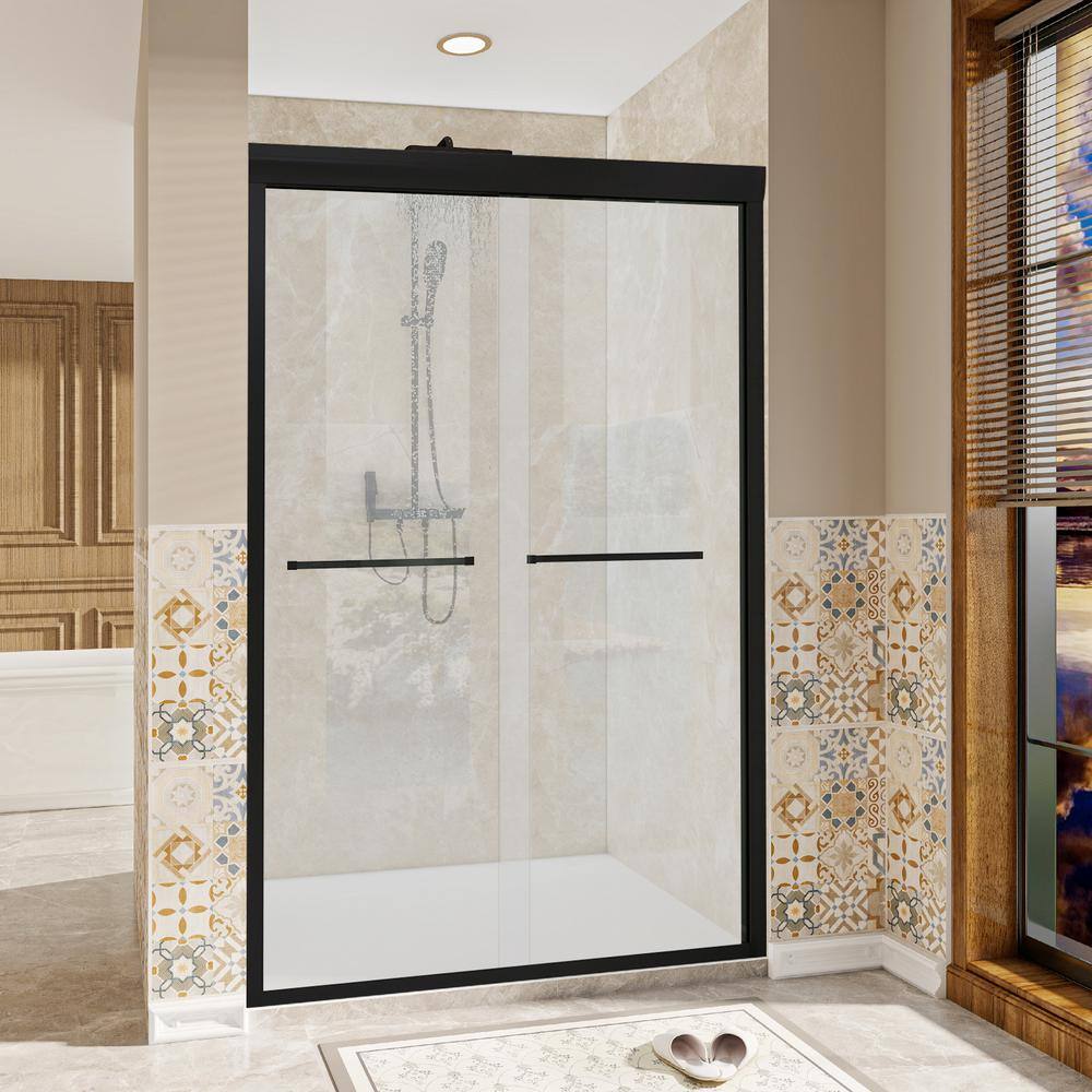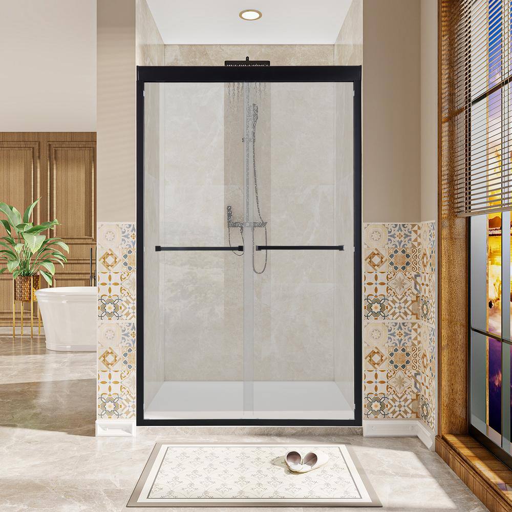 ANGELES HOME 48 in. W x 76 in. H Double Sliding Framed Shower Door in Matte Black Finish with 3/8 in. (8mm) Clear Certified Glass
